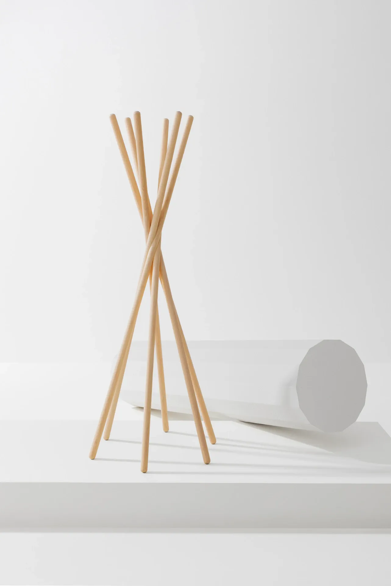 Omaggio al grande design italiano, Tango è un appendiabiti in frassino formato da sei elementi ritorti attorno a uno snodo centrale. Proprio la giuntura è stata lo spunto da cui è partito il progetto, che seguendo i dettami del minimalismo scandinavo ha puntato a non usare viti né raccordi di alcun tipo tra gli elementi, che sono fresati e semplicemente incastrati tra loro.