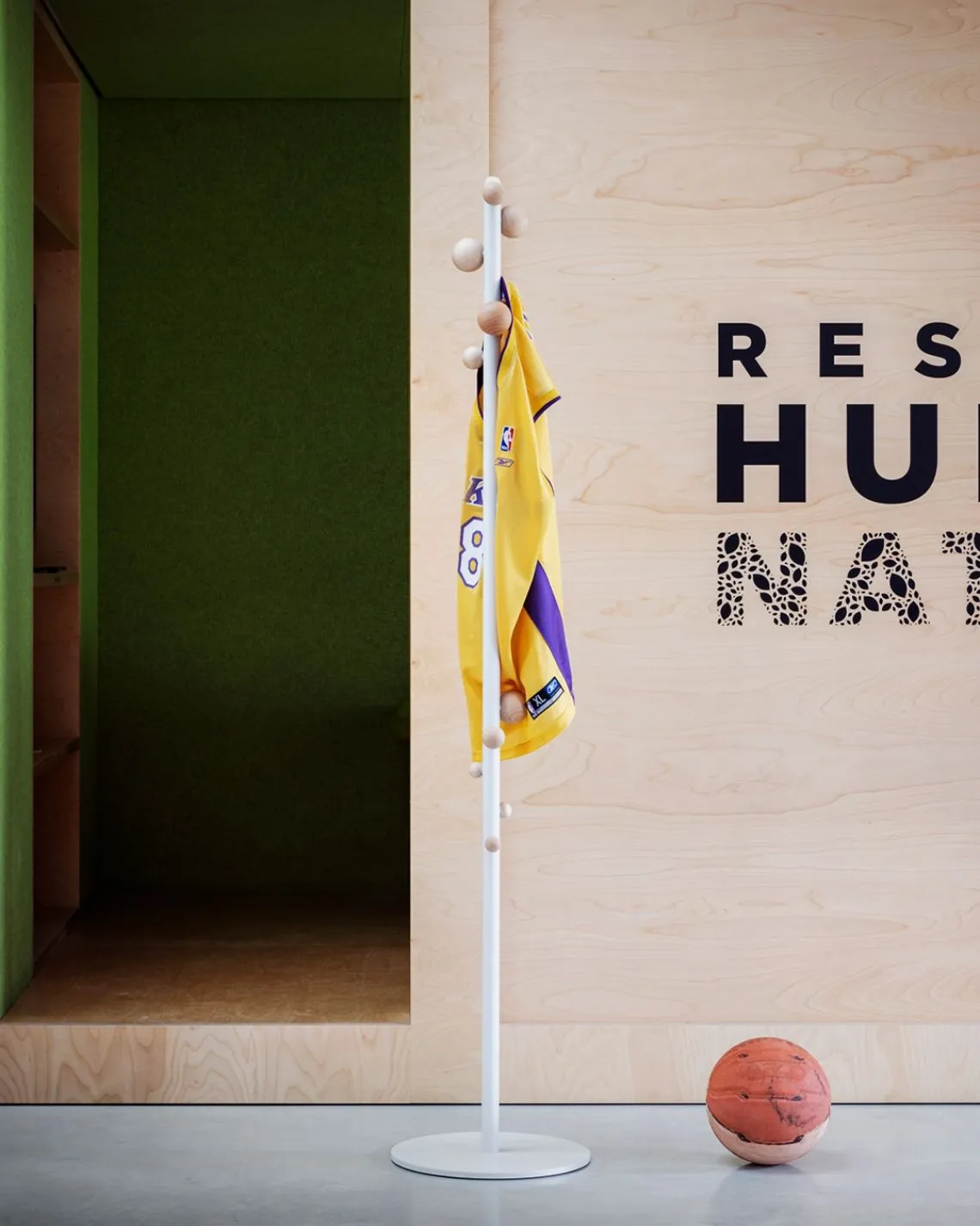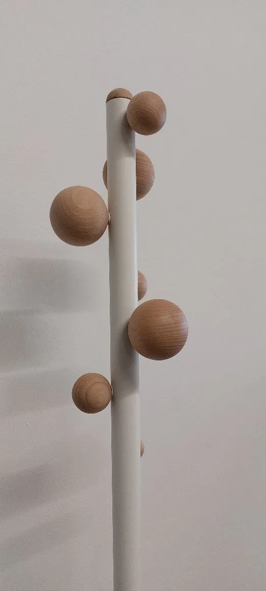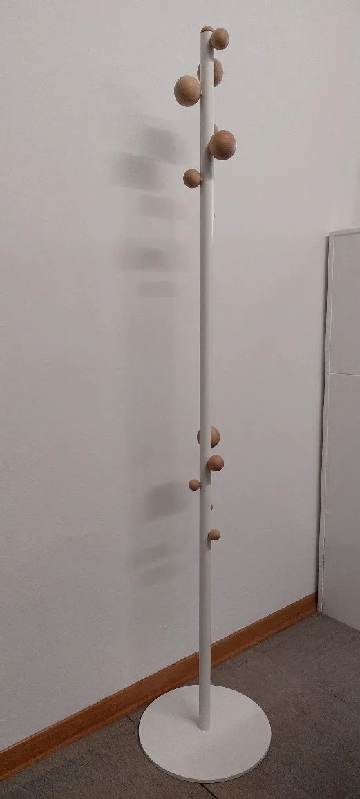 Appendiabiti mod. Bubble di Miniforms con stelo in metallo laccato bianco e sfere in faggio. Dimensione cm. 35 diametro, cm. 172 altezza. Pronta consegna, ultimo pezzo disponibile.