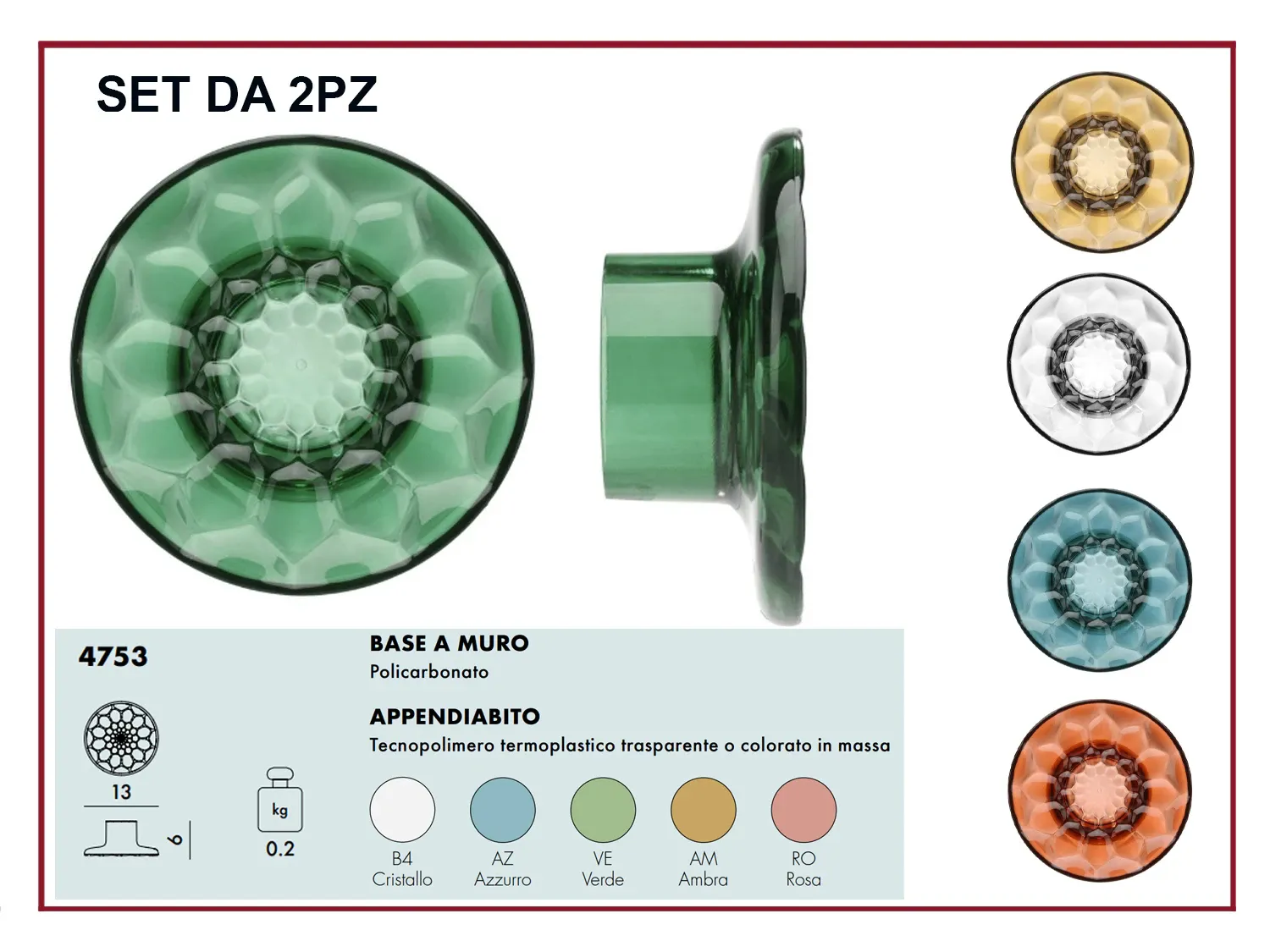 APPENDIABITO Tecnopolimero termoplastico trasparente o colorato in massa