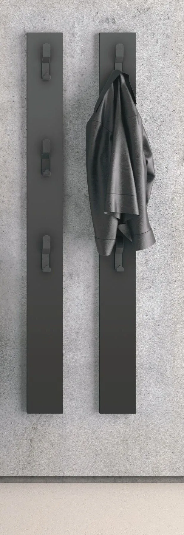 Elegante appendiabiti verticale a parete con 3 ganci.