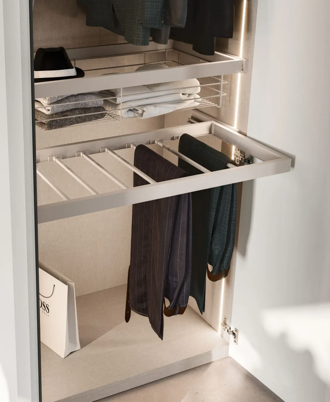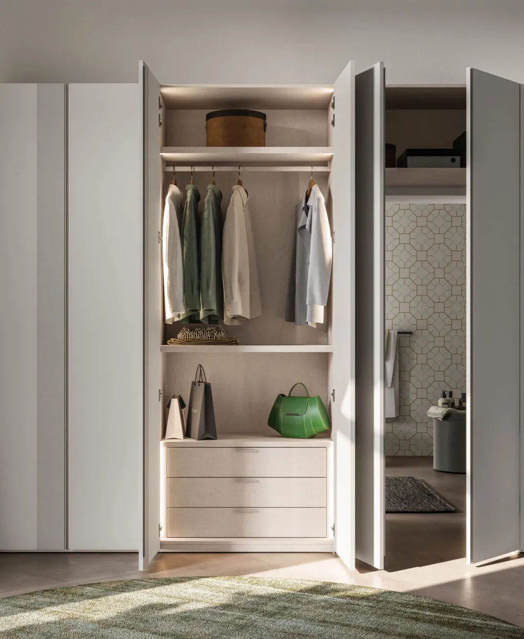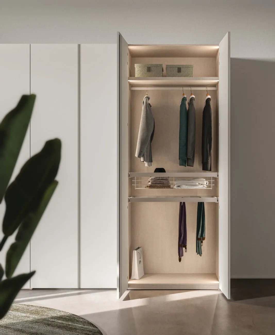 034 si dimostra capace di fondere perfettamente doti di funzionalità e stile in un'altezza che va da 231 a 265 cm. Armadio
