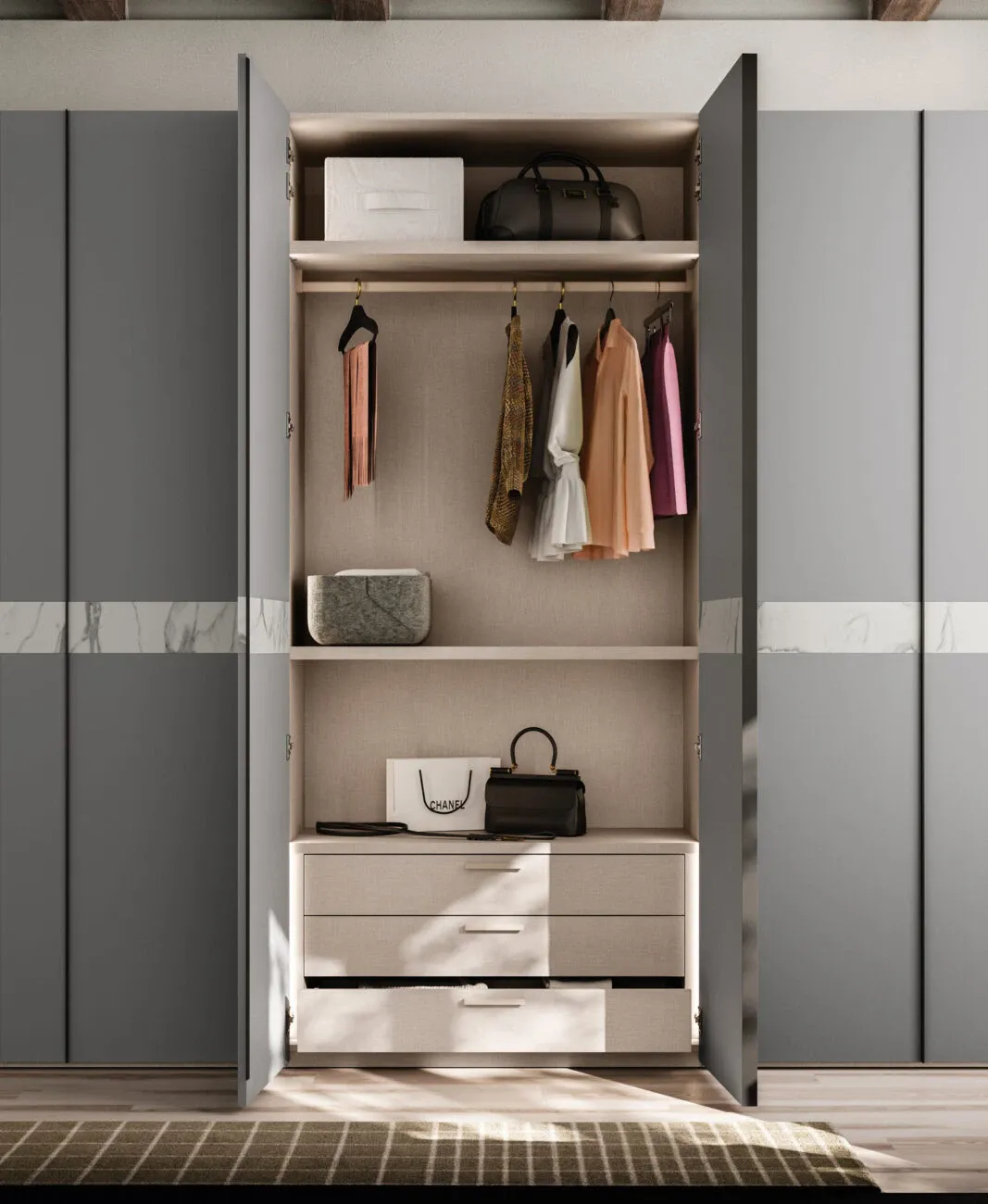 Negli ambienti domestici gli arredi non devono mai risultare ingombranti, per cui è imprescindibile valutare con attenzione le loro dimensioni: un armadio che si rispetti deve garantirti tutto lo spazio di cui hai bisogno per organizzare oggetti d'uso quotidiano, gioielli, biancheria e capi d'abbigliamento. Il