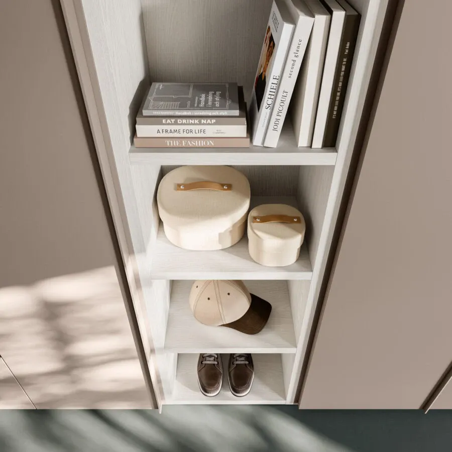 - Il numero di ante è collegato solitamente agli spazi all'interno dell'armadio: È veramente fondamentale considerare anche questo parametro prima di comprarne uno, poiché dalle volumetrie del mobile dipenderà la giusta organizzazione degli interni e la tua quotidiana tranquillità. Tornando al modello qui presente, ha sei ante.