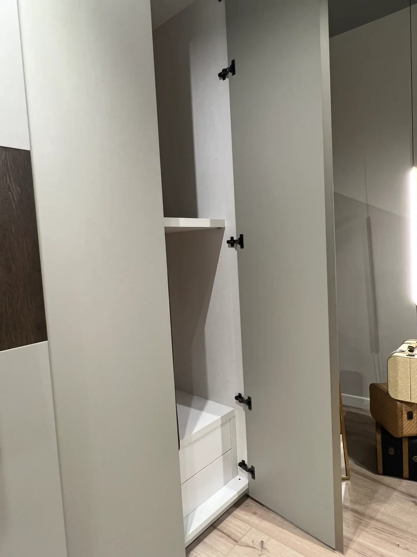 - Il marchio Moretti Compact Giorno Notte ha pensato a una grande varietà di accessori per l'armadio Atena, tra cui deve esserci di certo un'ampia cassettiera interna, ideale per il ricovero di oggetti, vestiti o gioielli.