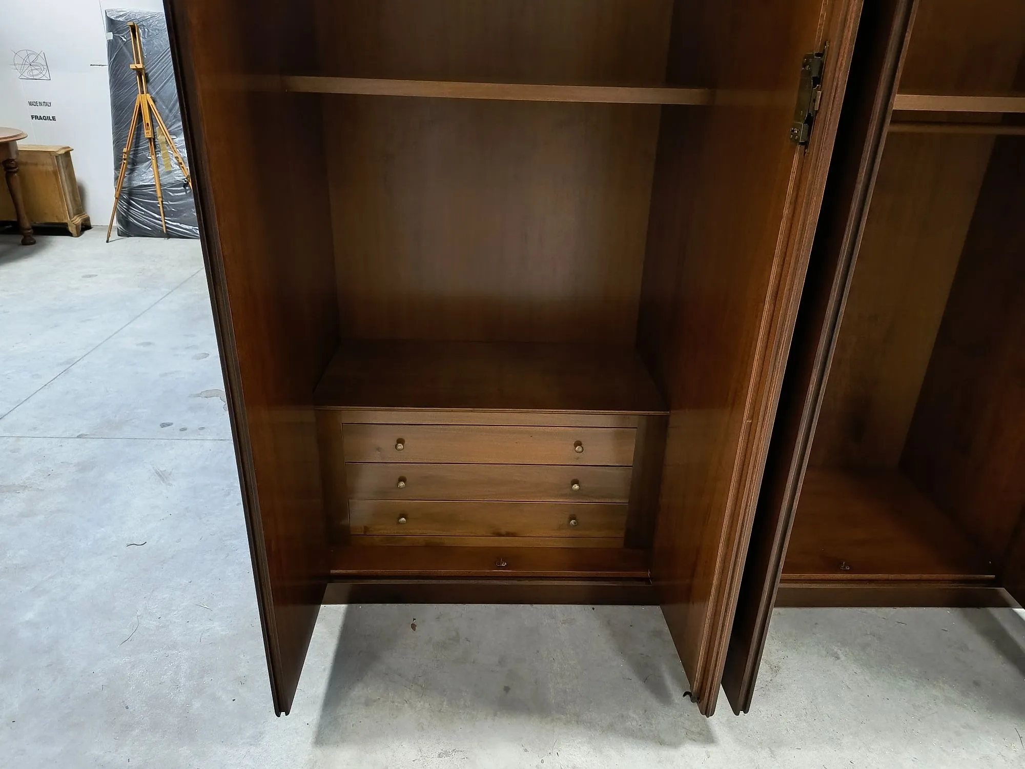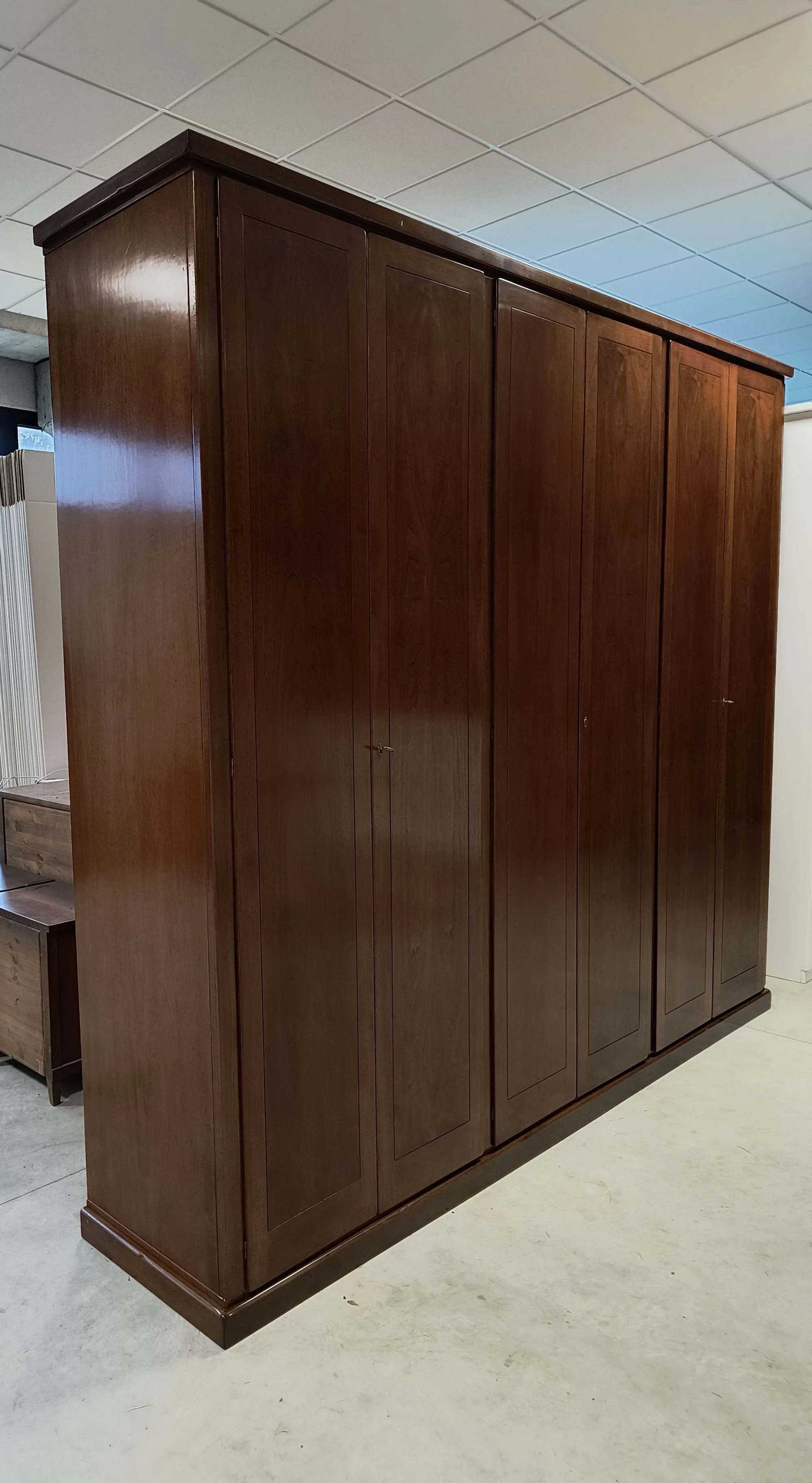 Armadio artigianale a 6 ante realizzato IN LEGNO DI NOCE , misure 300x60x258h , attrezzatura interna ben fornita (5 bastoni appendiabiti , 3 ripiani e 1 cassettiera a 3 cassetti ) , FINITURA A GOMMALACCA ANTIQUARIATO , disponibilità ad effettuare una video chiamata per mostrare tutti i dettagli , TRASPORTO INCLUSO IN TUTTA ITALIA