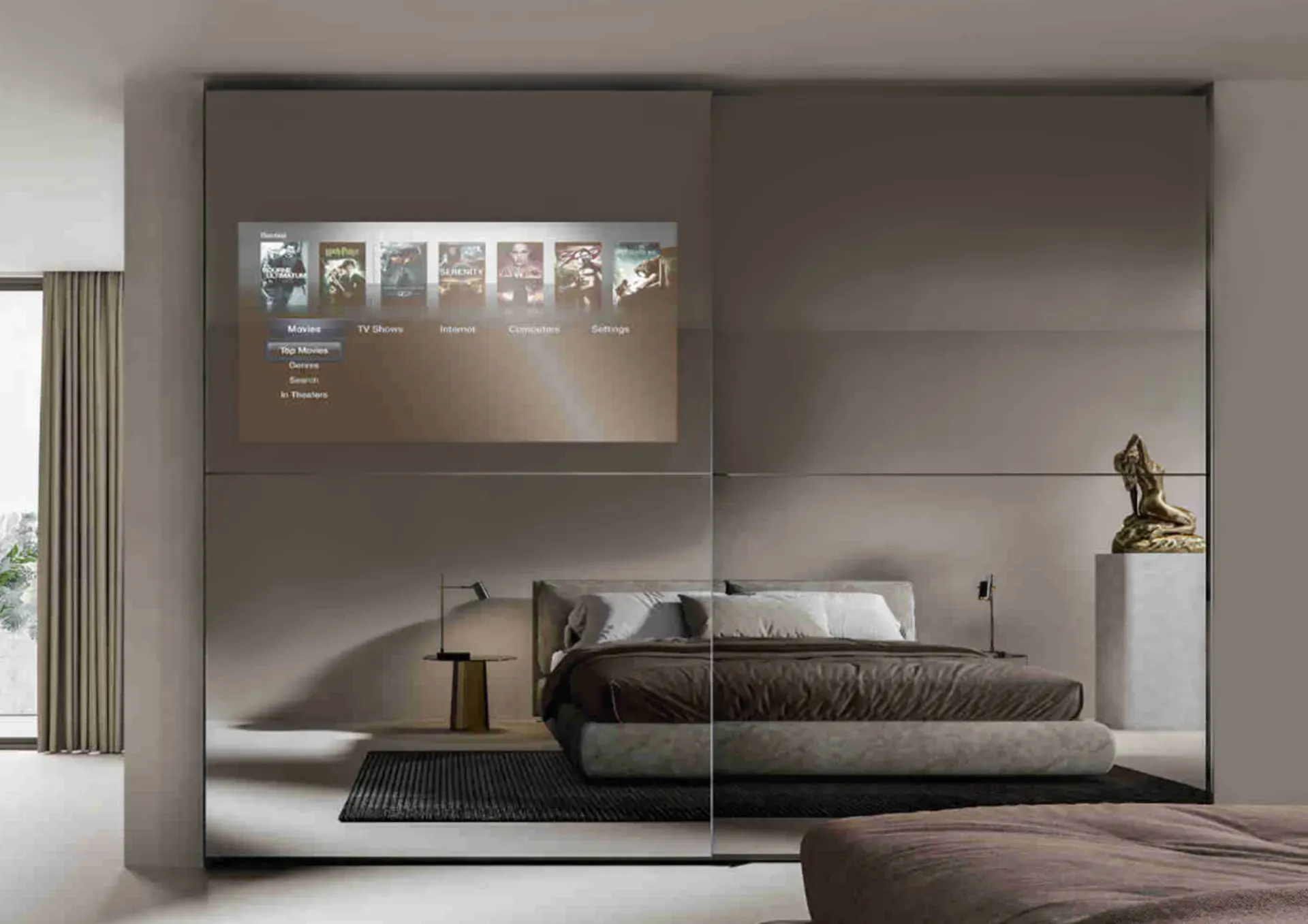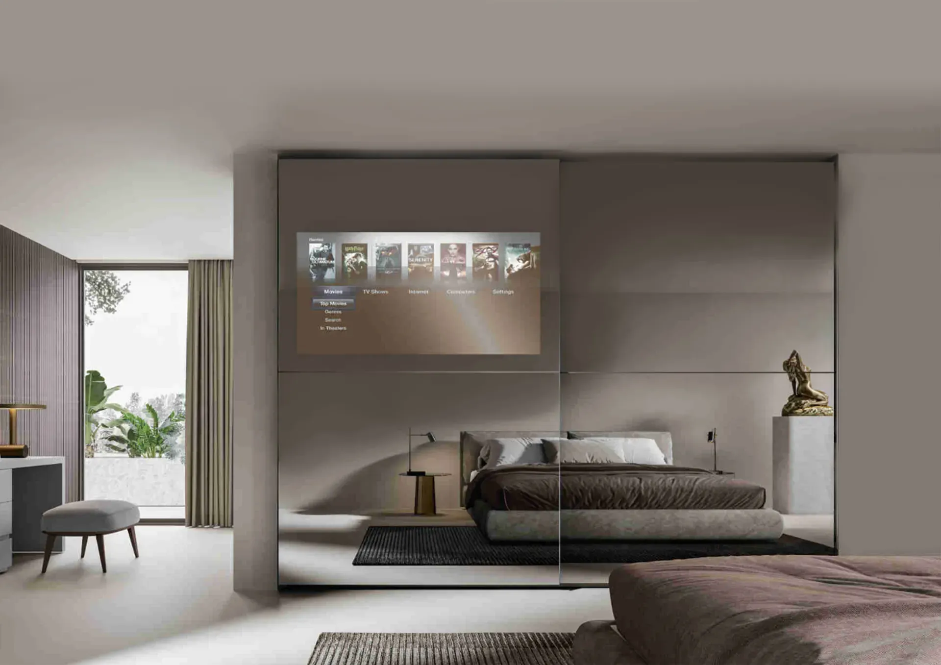 L'armadio Visual, di produzione Veneran, è un sistema evoluto che interpreta al meglio le tendenze più attuali dell abitare. L'armadio è progettato per integrarsi perfettamente con l ambiente circostante e fornire un esperienza visiva di alta qualità. Grazie alla tecnologia del vetro stopsol fumè serigrafato, la TV è celata quando non in uso e diventa visibile solo quando accesa, creando un effetto sorprendente che valorizza l arredamento della casa o dell ufficio.