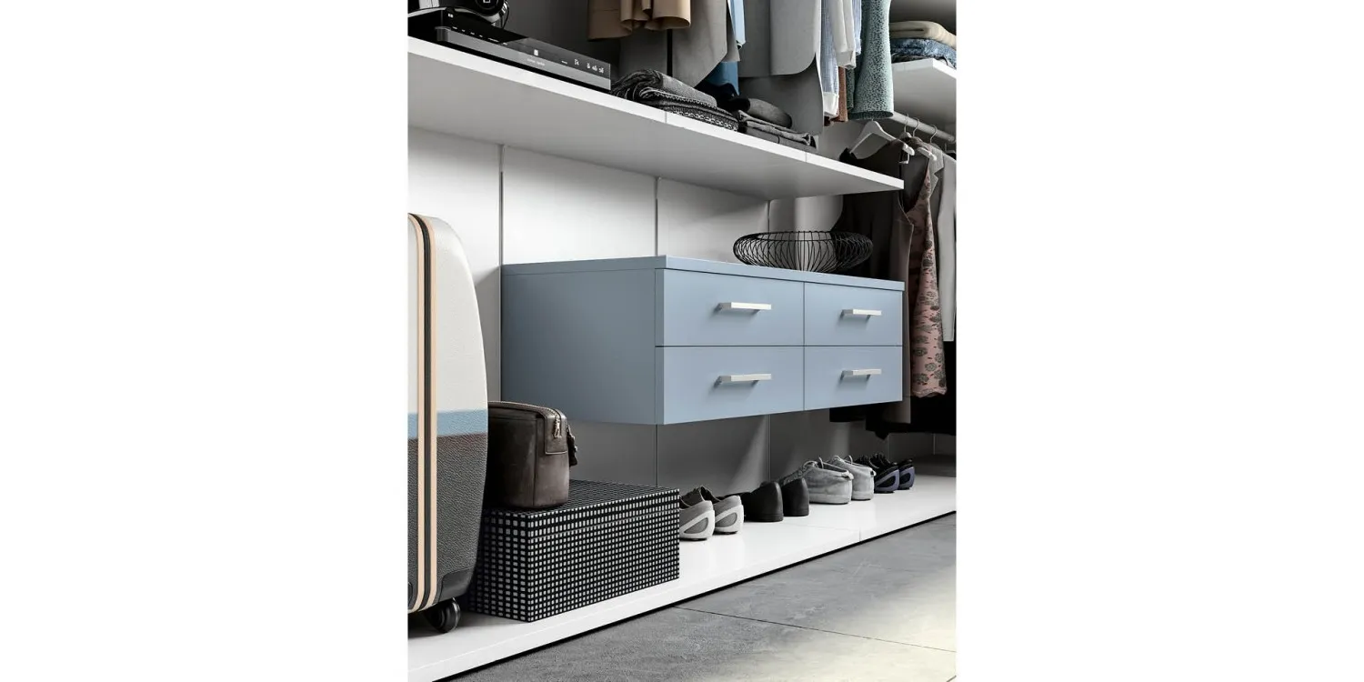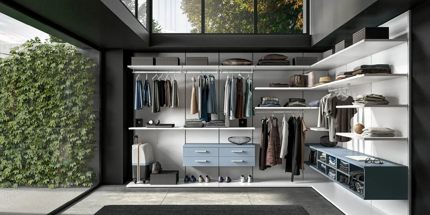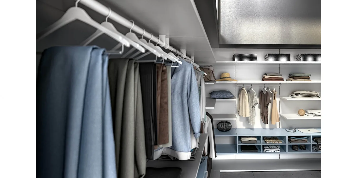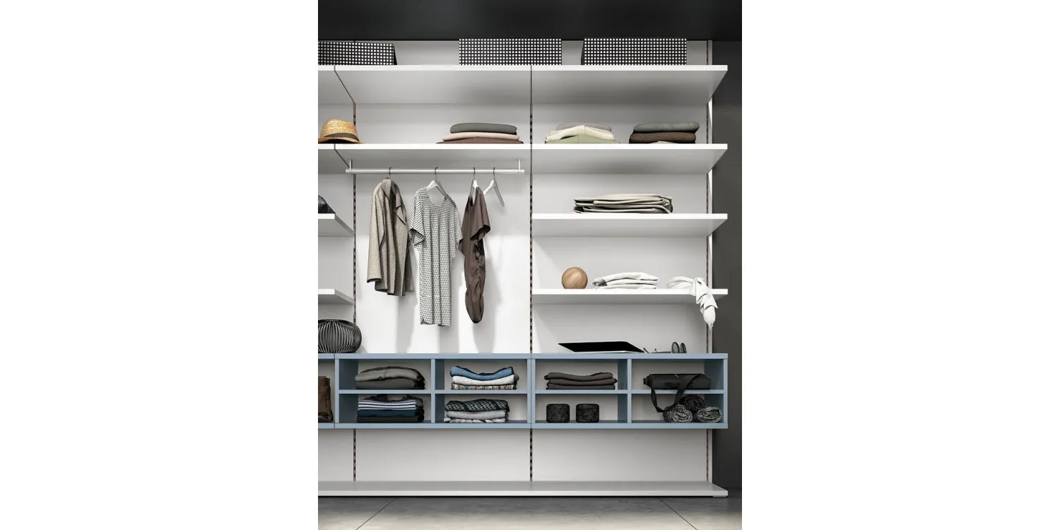 L'acquisto di un guardaroba implica anche la valutazione del numero di ante: potete dare vita a varie configurazioni in base alle singole problematiche abitative. L'armadio Cabina armadio system soul 3 qui visibile è uno dei nostri modelli a nessuna anta ma potrai richiedere soluzioni realizzabili su misura per te contattando i nostri professionisti d'arredo.
