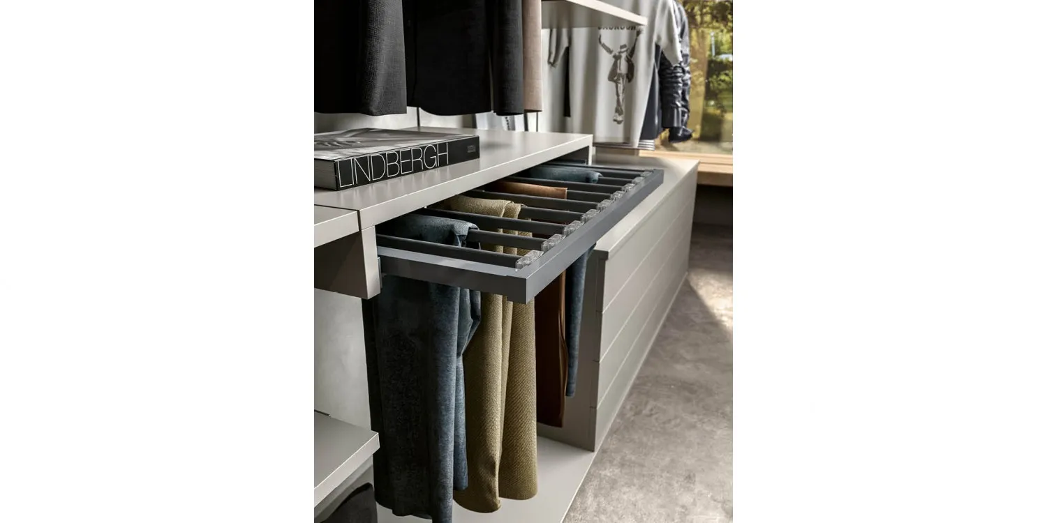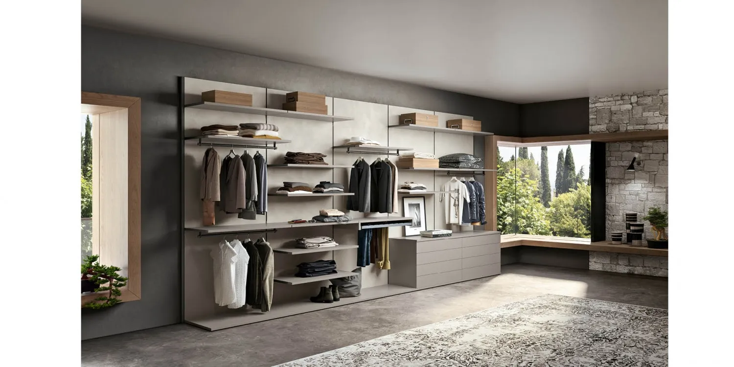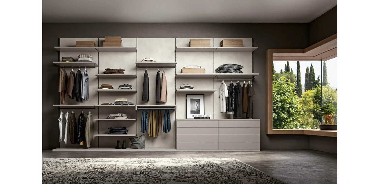 Nella camera da letto sono diversi i pezzi di arredo che organizzano l'ambiente e le funzioni. Obiettivo della progettazione della Zona notte è un ambiente votato al massimo comfort, accogliente, elegante. Mottes seleziona cabine armadio in stile moderno per la Zona notte pensati per ottenere il meglio dallo spazio disponibile. Con i modelli di cabine armadio in laccato opaco avrete la possibilità di progettare la camera da letto che sognate. La Zona notte è spazio privato che più di altri ambienti interpreta la personalità di chi lo vive e perciò va organizzato con molta attenzione. Cabina armadio a cremagliera con schienali namib, Nuance delicate e raffinate con lo schienale finitura Namib e gli elementi argilla, di Lunghezza 455 cm, Profondità 62.3 cm e Altezza 258cm.I ripiani di spessore 25mm sono disponibili nelle profondità 45,4 e 54cm; nelle larghezze 45, 60, 90 e 120cm. Funzionale il portapantaloni in metallo Dark grey. Mobile su ordinazione con finiture dei materiali personalizzabili su richiesta. La nostra offerta è di 3.200,00 compreso IVA e trasporto, montaggio escluso.