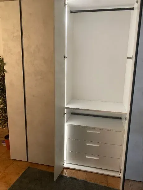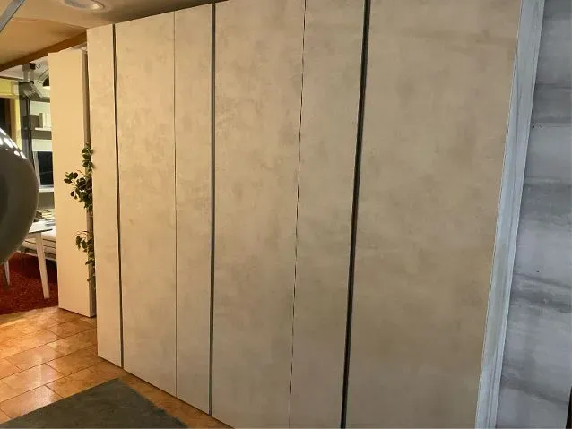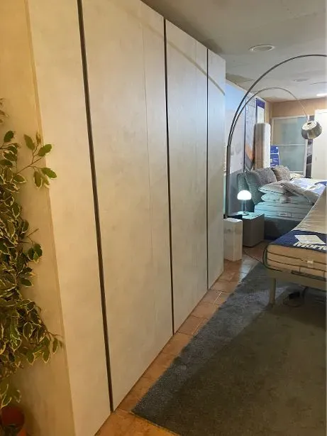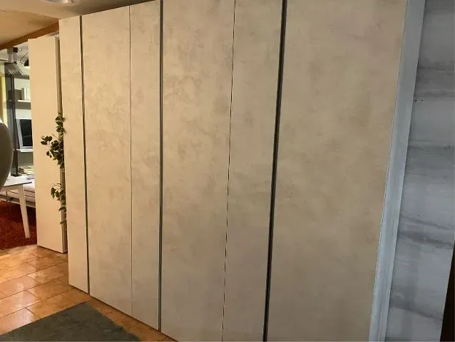 armadio 6 ante 3 da 30 e 3 da 60 battenti con gola finitura malta misure 270 x 242 altezza 58 prof. ogni colonna sulla spalla interna c'e' una striscia led incassata con sensore
