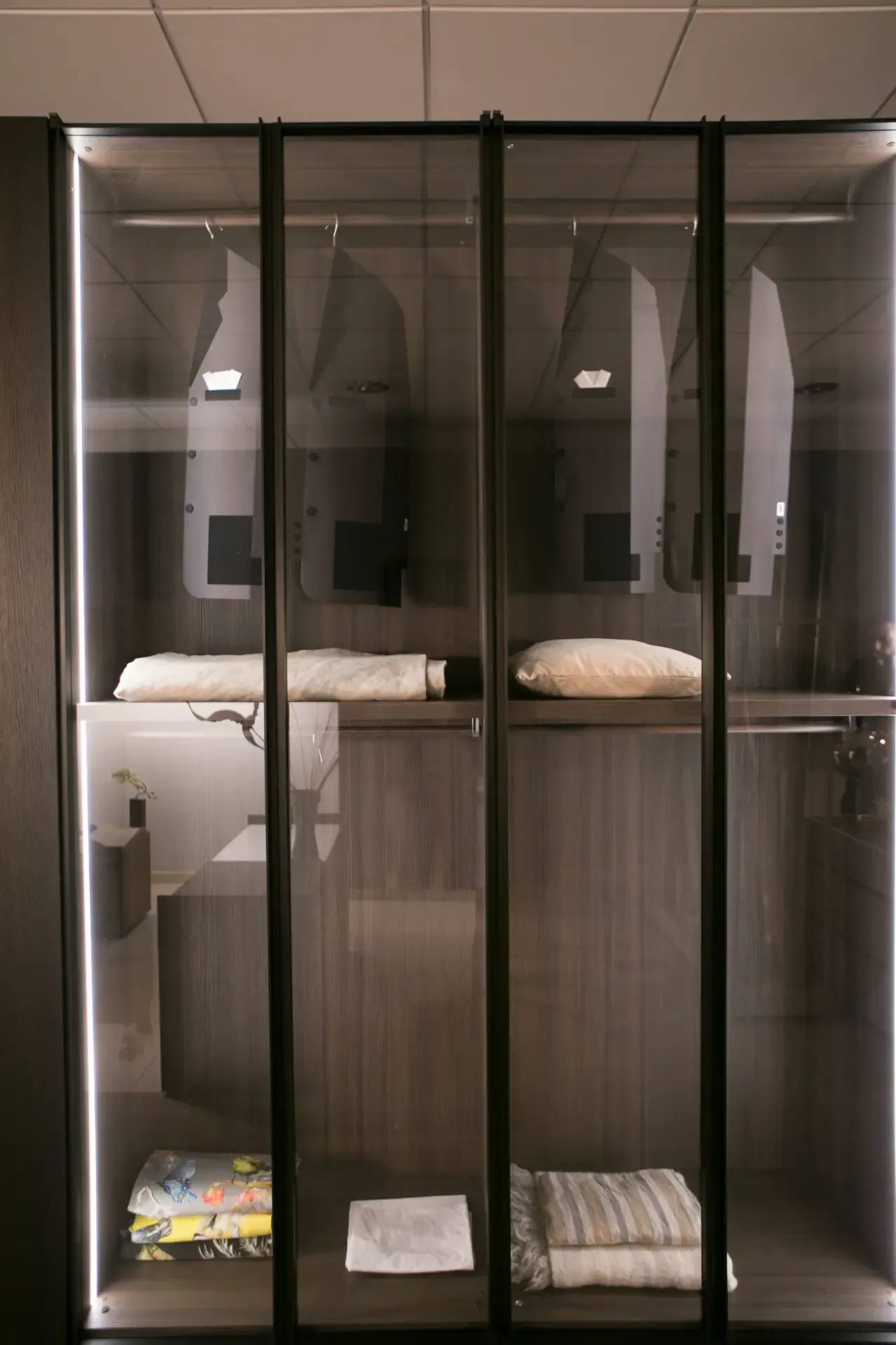 A caratterizzare le doti di praticità e design di un mobile sono innanzitutto le finiture, i quali devono offrire resistenza nel tempo ma altresì un certo stile: questo armadio è in vetro di grande qualità.
