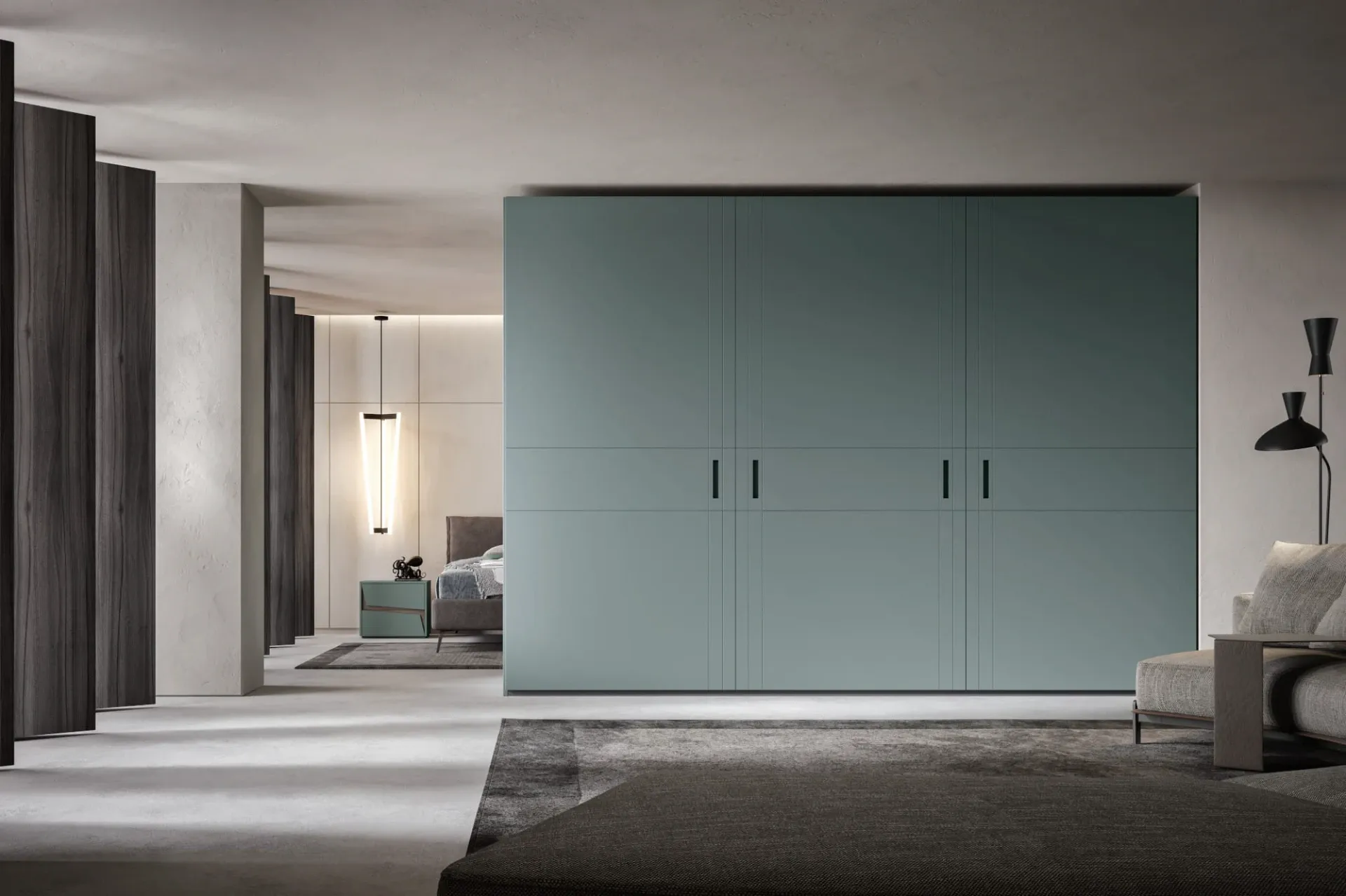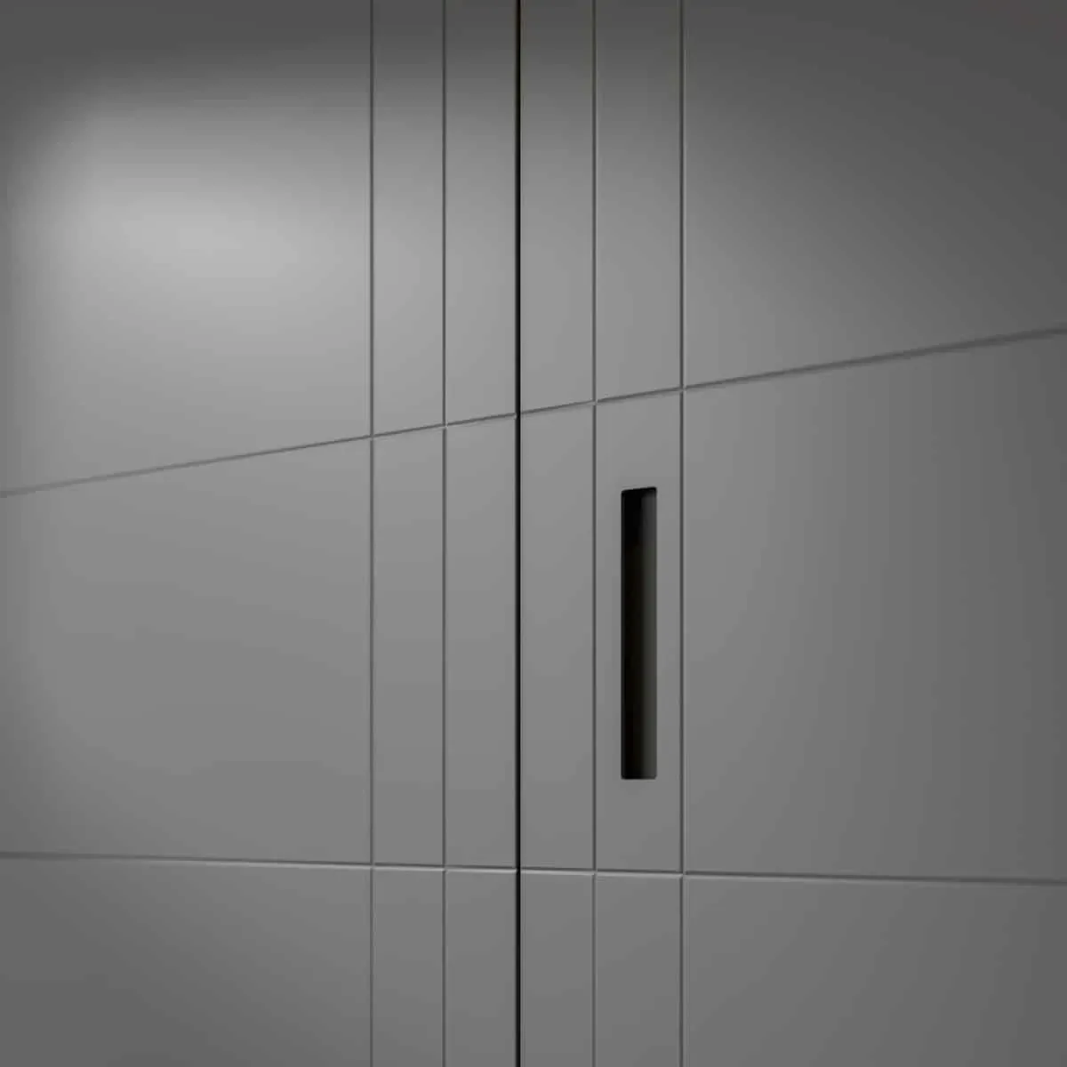 Questo armadio è prodotto sempre su misura in varie larghezze e altezze, in molte finiture dai laccati opachi o lucidi, in legno di frassino o di rovere.