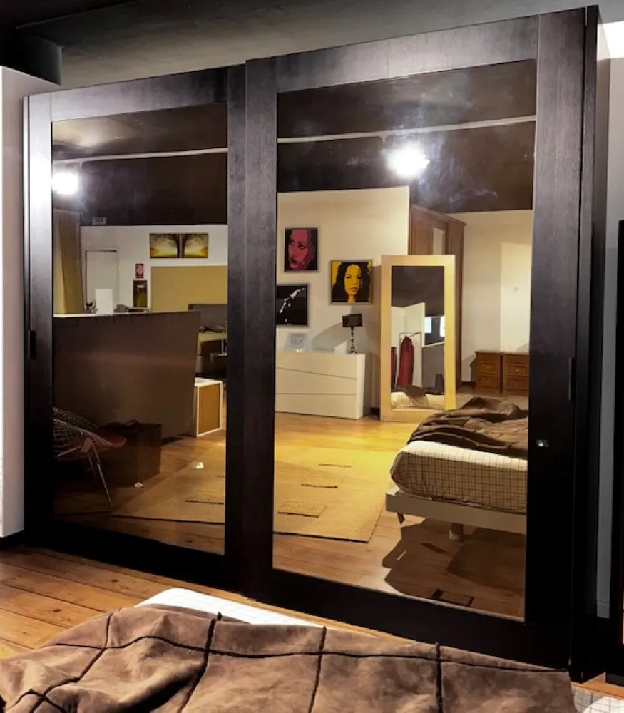 Ante in Rovere Moro impiallacciato e vetro specchiato bronzato