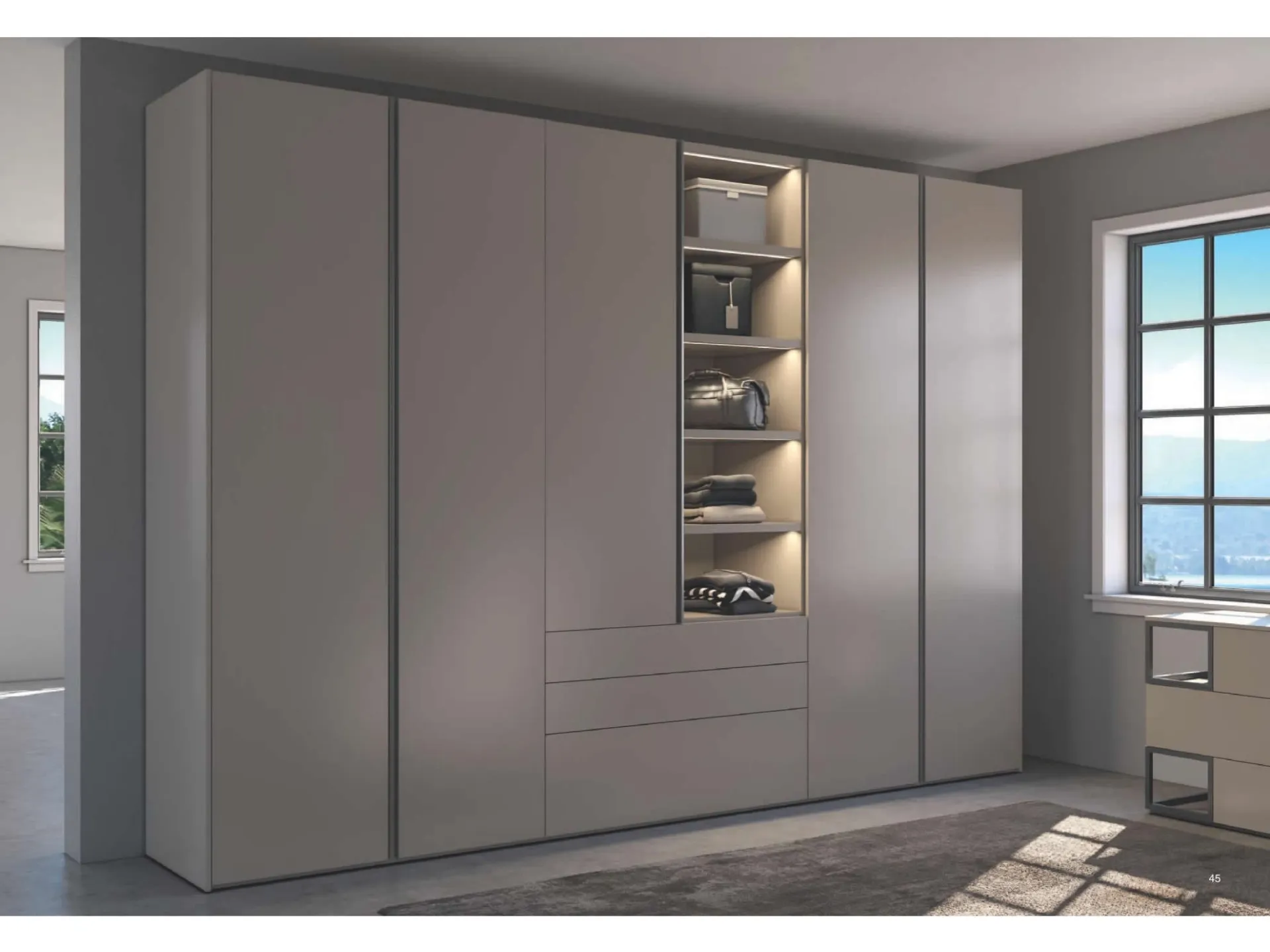 Gli armadi non devono assolutamente essere d'ingombro, per questo motivo le loro misure sono davvero importanti da considerare: questo modello, cha va oltre 301 cm in larghezza, è ideale per essere posizionato in locali di diverse dimensioni, per valorizzare il tuo spazio in una molteplicità di possibilità estetiche.