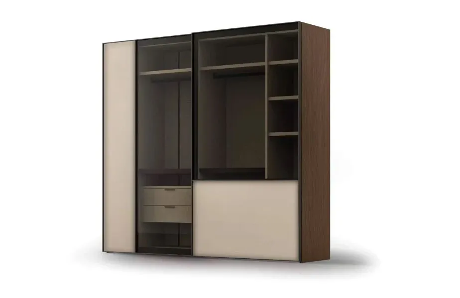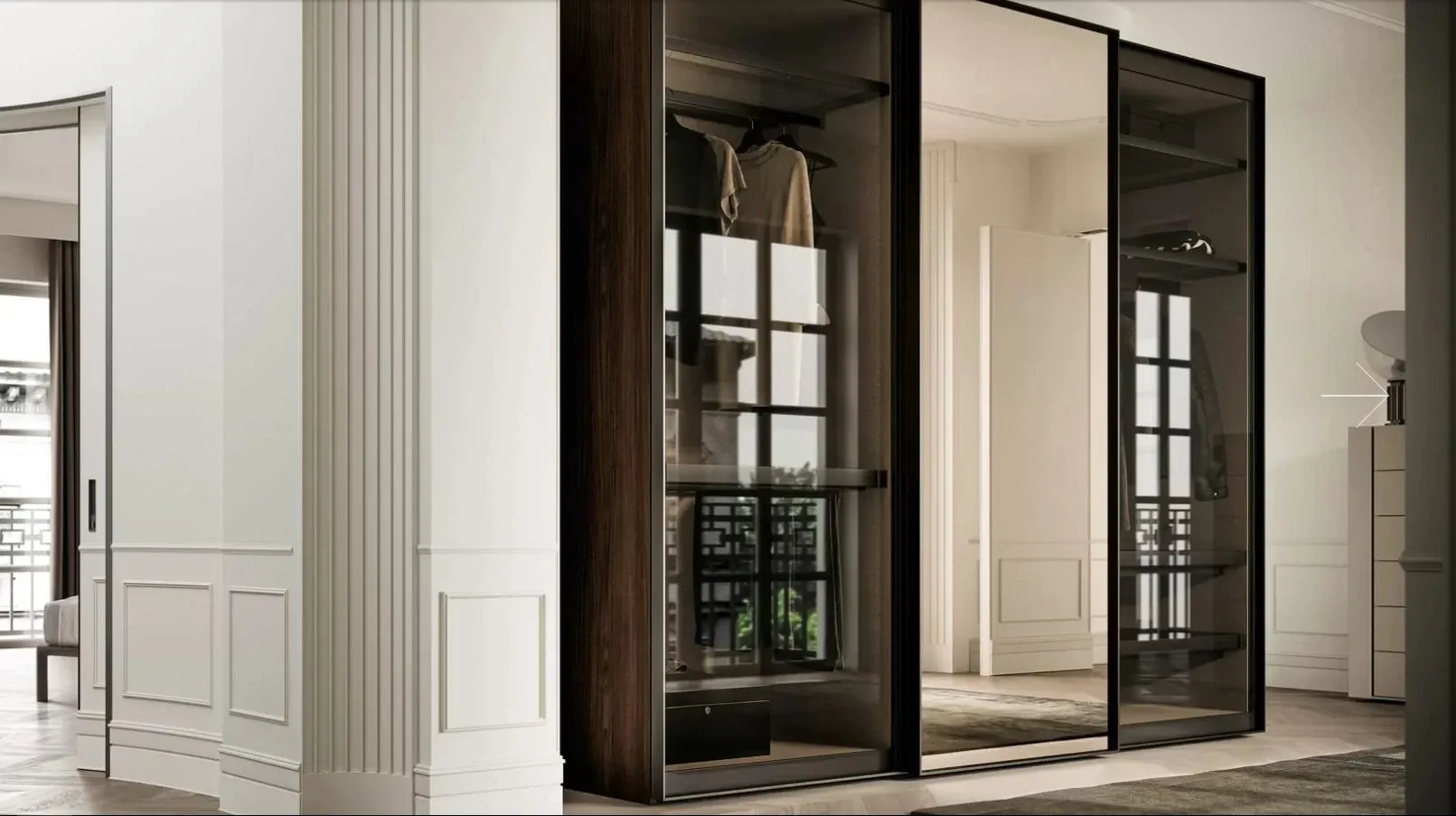 Ogni materiale occorre che sia scelto apposta per la tipologia di mobile che andrà a caratterizzare, poiché ha peculiari caratteristiche pratiche ed estetiche: l'armadio Armadio 2a scorrevoli night è realizzato in vetro.