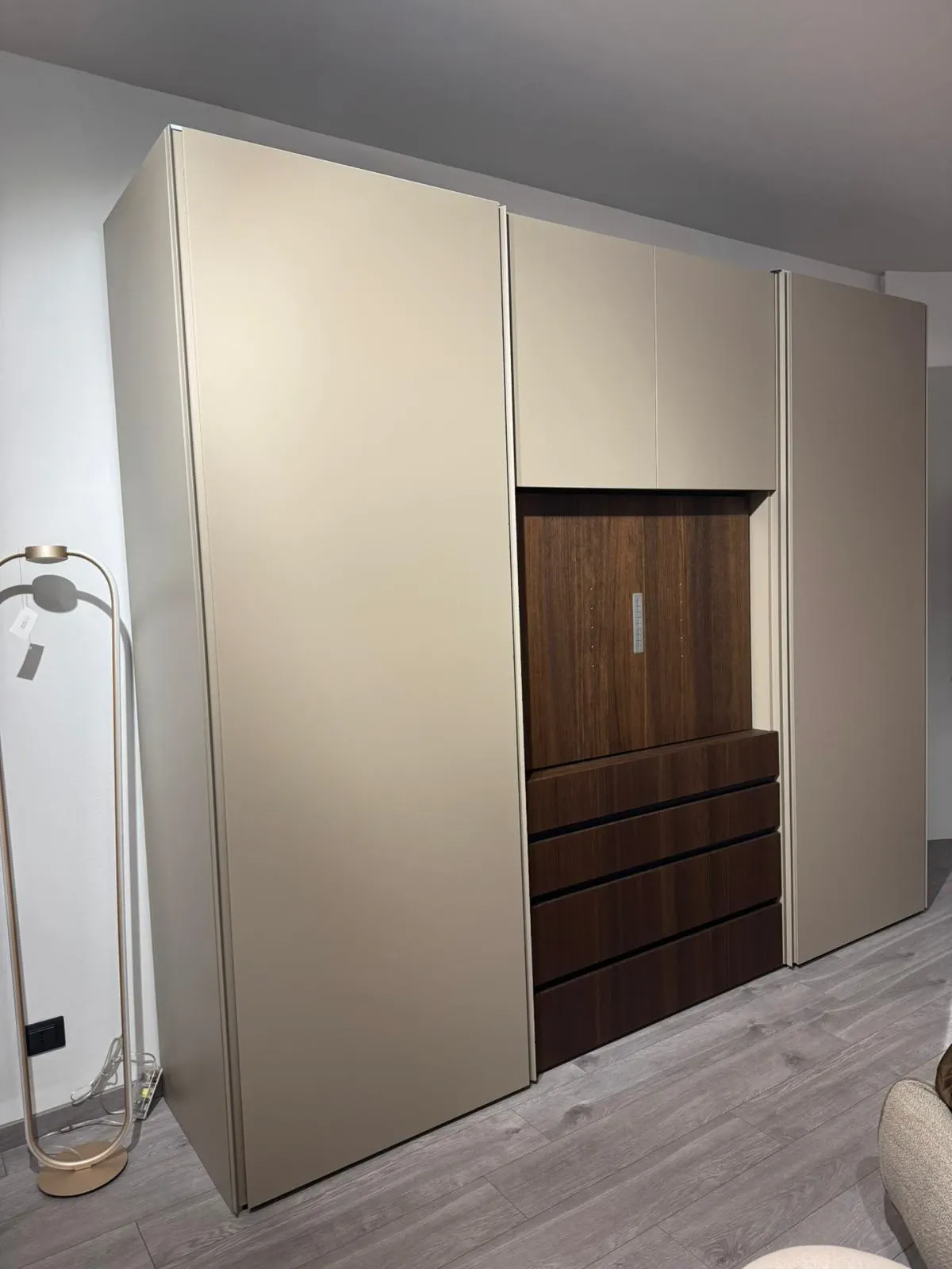 A definire le doti di funzionalità e stile di un mobile sono innanzitutto i materiali, i quali devono offrire resistenza nel tempo ma altresì un elevato contenuto estetico: questo armadio è in laccato opaco di grande qualità.