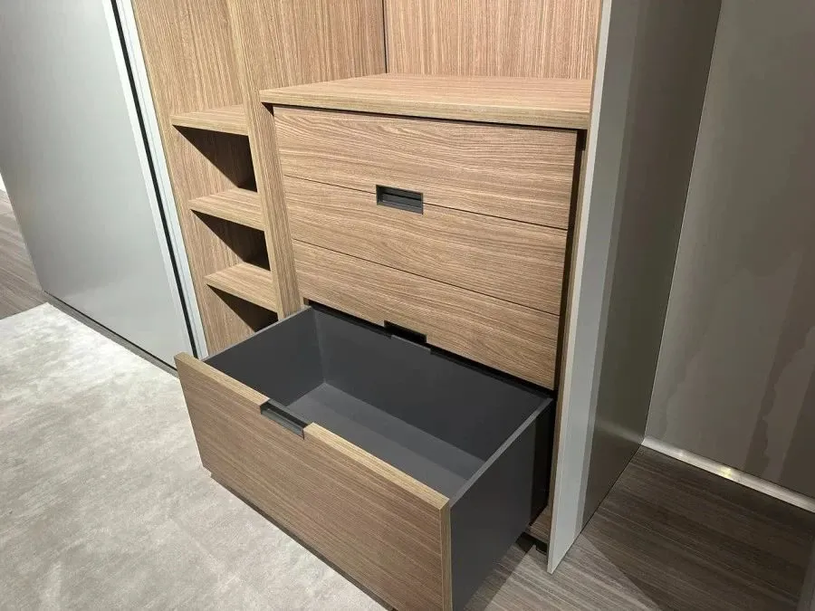 Il lavoro di Bonuccelli sul modello Filo riflette la sua filosofia progettuale basata sull'attenzione ai dettagli, la precisione e l'equilibrio tra estetica e utilità. La sobrietà formale è elevata dalla cura per l'organizzazione interna e dalla flessibilità degli spazi, elementi fondamentali che ne fanno un sistema guardaroba completo e versatile.