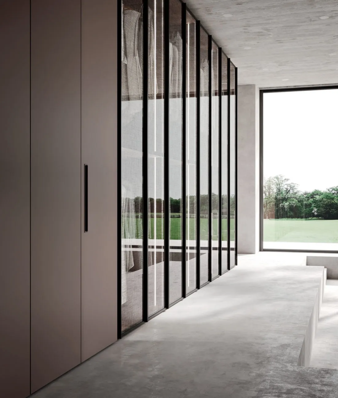 - È essenziale considerare il numero di ante di un'armadiatura prima di acquistarne uno, in quanto dalle misure dell'arredamento dipenderà la migliore ottimizzazione dei locali: il modello Armadio battente anta glass ha otto ante.
