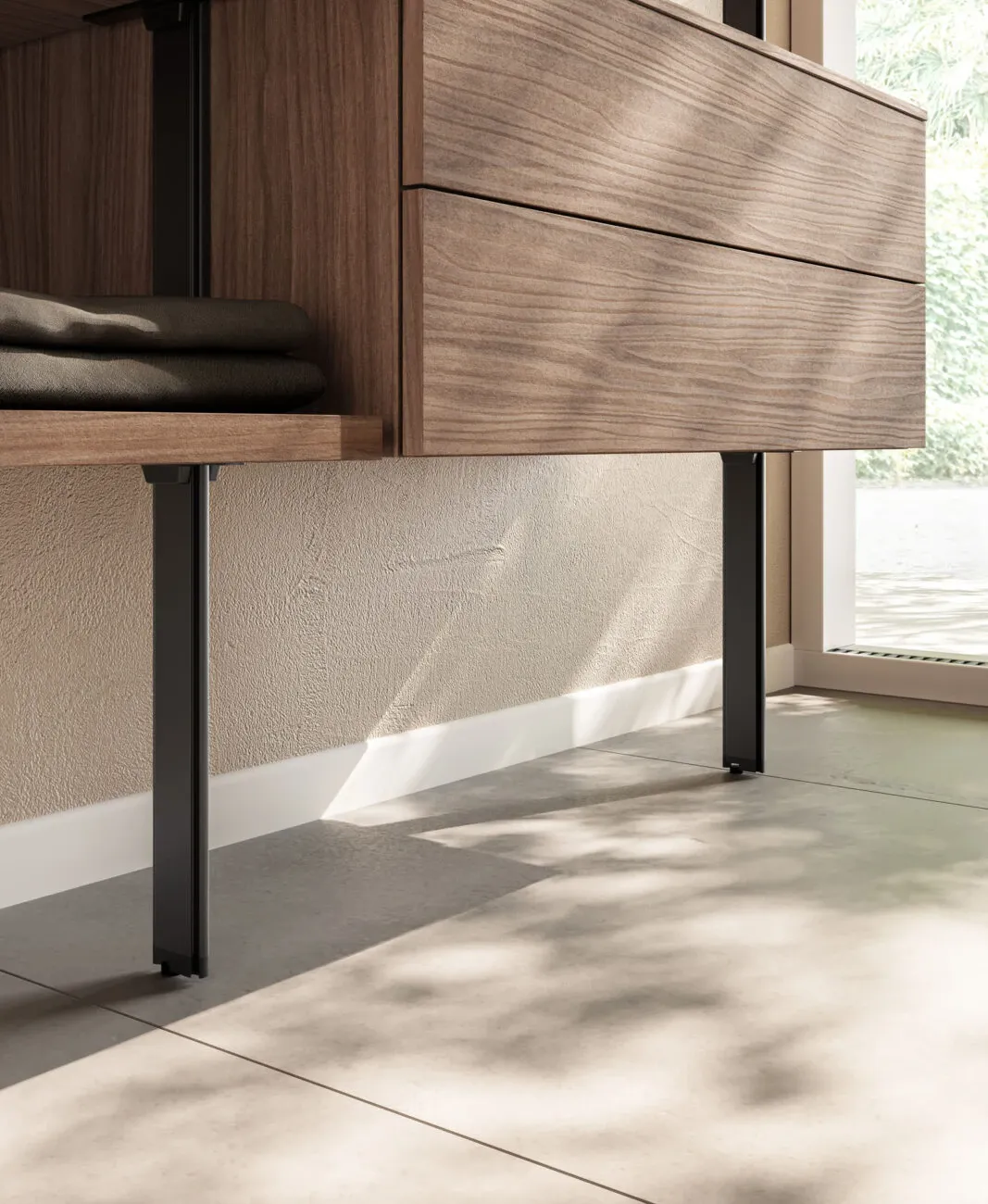 Armadio componibile a 6 ante modello Tratto con maniglia con gola,proposto nella versione in Nobilitato opaco,nei diversi colori a scelta del campionario(cm.302,5 lunghezza x cm.61 profondità x cm.257,8h.)completo di cassettiera interna a 3 cassetti,con ante con cerniere ammortizzate,affiancato a montanti a parete in metallo nella finitura brunita del programma componibile mod.Pole,completo di: 1/elemento-a 2 cassetti da cm.90 x cm.36,8h. x cm.47,7 profondità, 1/elemento-pensile a giorno da cm.90 x cm.36,8h. x cm.45,6 profondità. 1/elemento con vano a giorno da cm.45 x cm.36,8h. x cm.45,6 profondità. 2/mensole da cm.45 x cm.45,6 profondità spessore cm.3 . 2/mensole da cm.90 x cm.45,6 profondità x cm.3 spessore(con misure esterne d'ingombro di: cm.139,8 lunghezza x cm.47,7 profondità x cm.232 altezza dei montanti. E' disponibile nei diversi colori e finiture del campionario. Viene prodotto con materiali di alta qualità,con l'impiego esclusivo di pannelli ecologici classe E1 e con l'utilizzo di vernici ecologiche a base d'acqua,prive di solventi,che possano nuocere alla salute. Il prezzo-promo è compreso del trasporto e del montaggio in tutte le Regioni d'Italia. Per qualsiasi informazione,potete contattarci attraverso il nostro indirizzo di posta elettronica.