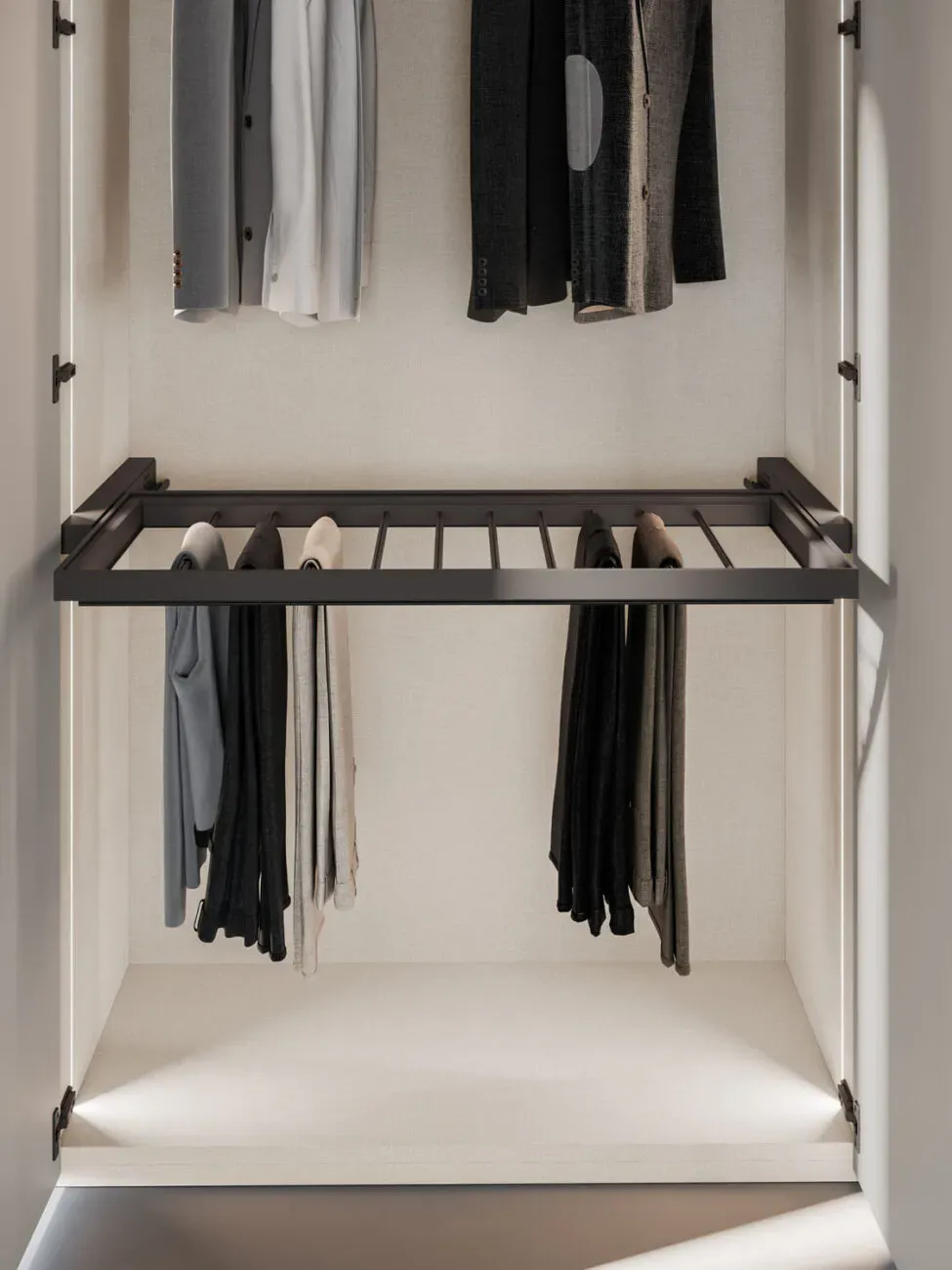 - Il buio all'interno del tuo armadio non sarà più un problema: trovare o riporre i tuoi capi di abbigliamento sarà facile ed immediato per merito della sua illuminazione interna con luci a led.