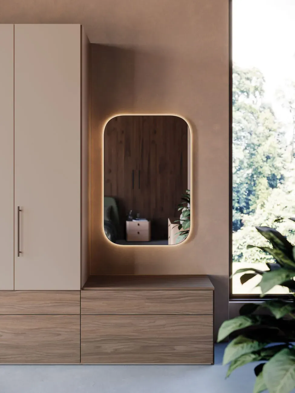 Elemento terminale con cassetti e specchio Soul retroilluminato.