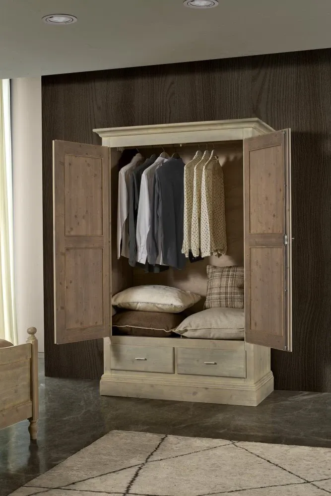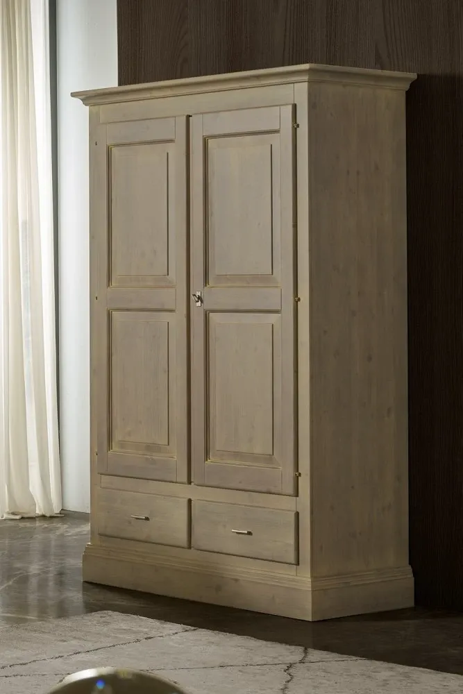Mottes Mobili propone questo armadio a 2 ante battenti e 2 cassetti esterni in legno massello di Abete, l.127 h.200 p.60 compreso bastone appendi abiti. Possibilità di personalizzare colori e maniglie. Tempi di consegna 30-40 giorni. Proposto scontato a Euro 1.250,00 compreso Iva e trasporto, montaggio escluso