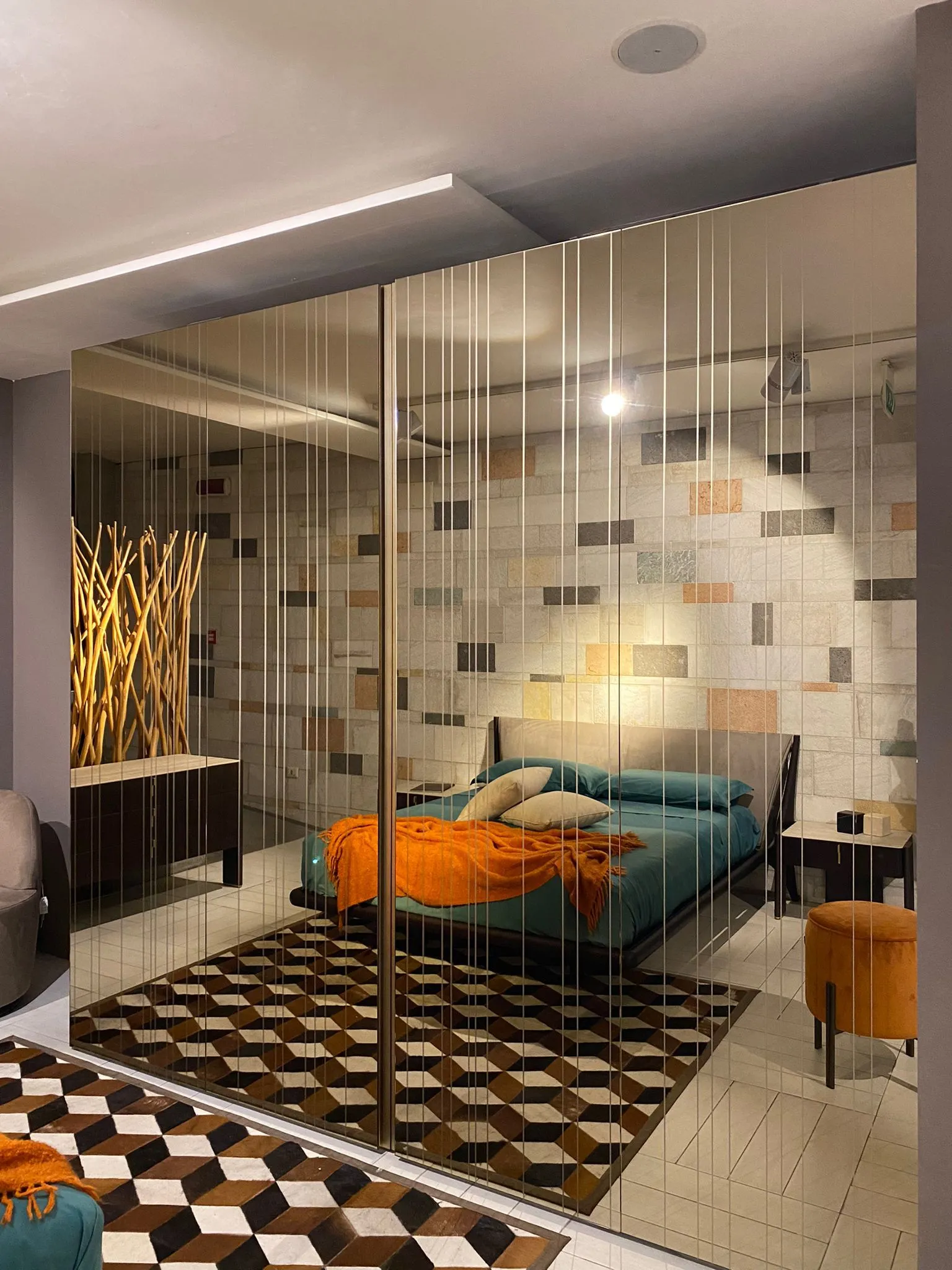 L'armadio Raggio è costruito in specchio, materiale pregevole che risponde alle tendenze moderne e alle richieste funzionali. Vi regalerà un pezzo di arredamento esteticamente apprezzabile, durevole e di gran classe.