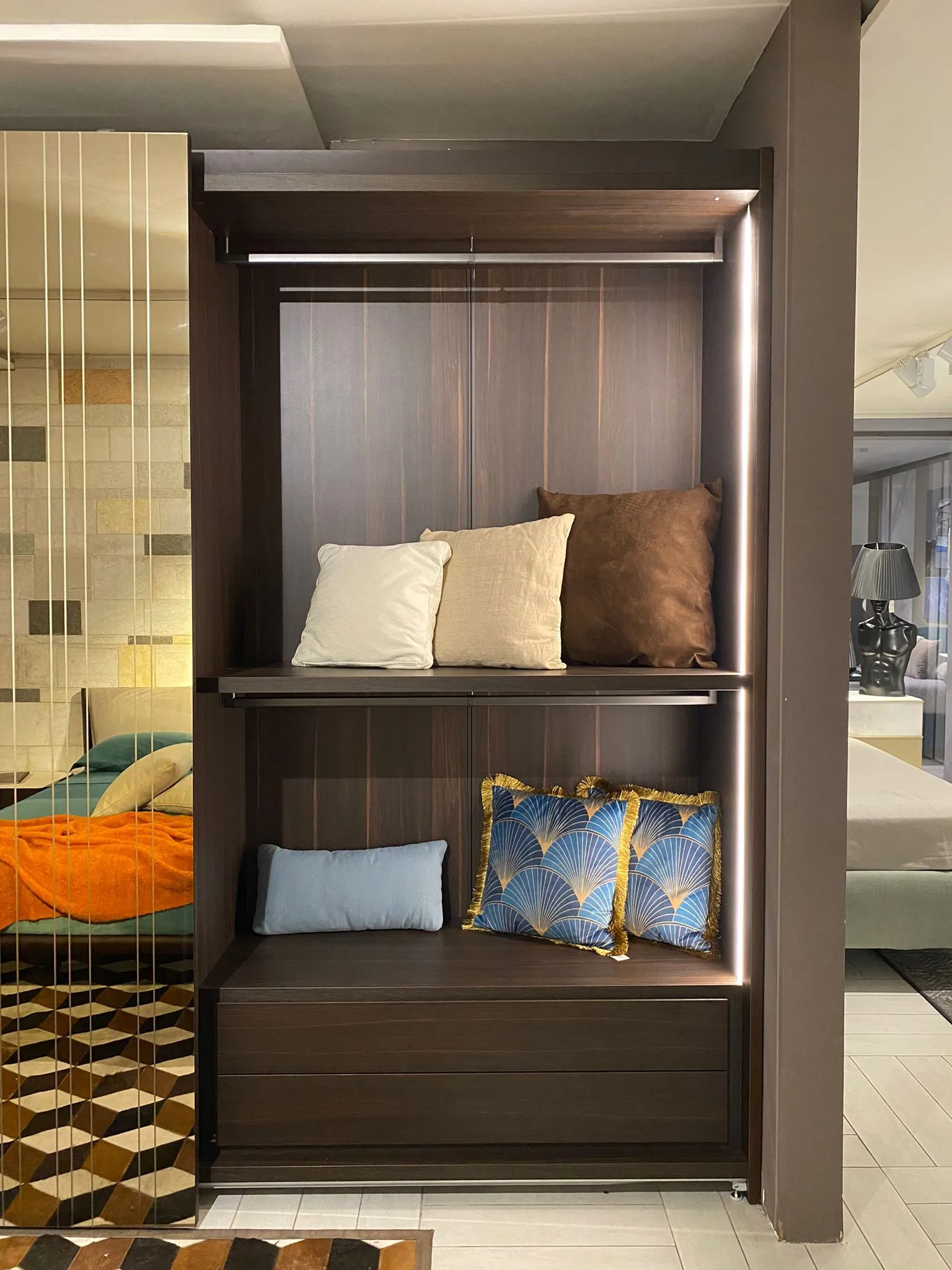 La scelta di un guardaroba implica anche la valutazione del numero di ante: c'è modo di dare forma a differenti configurazioni in base alle singole esigenze abitative. L'armadio Raggio qui presente è uno tra i nostri modelli a due ante ma potrai richiedere soluzioni realizzabili su misura per te contattando i nostri consulenti d'arredo.