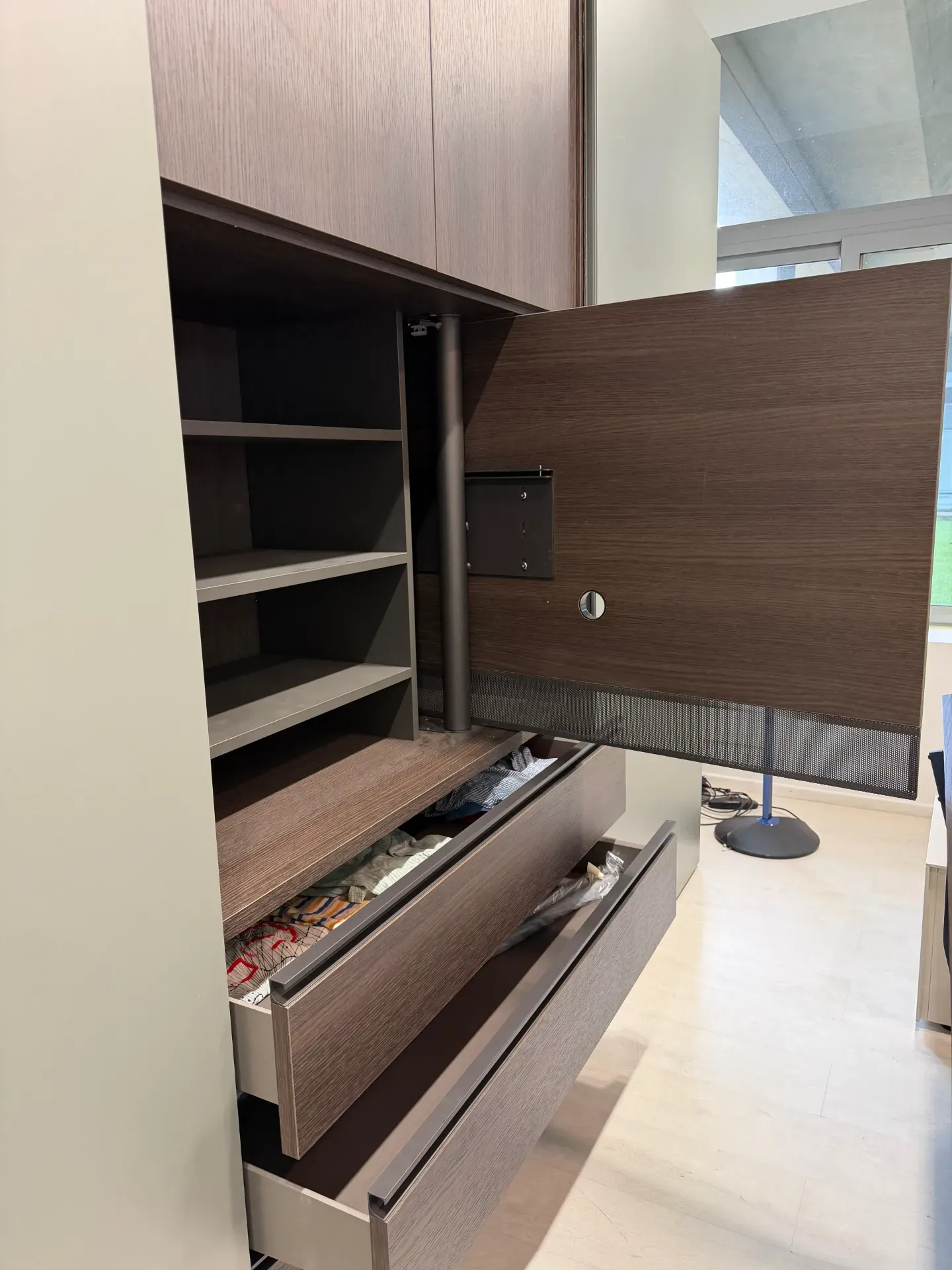- Quest'armadio Smart non consta di nessuna luce interna, ma molteplici soluzioni saranno disponibili su richiesta.