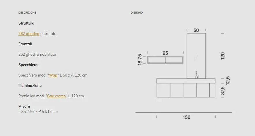 - Dettagli: Lavello integrato, Rubinetteria nessun rubinetto, Specchio nessuno specchio