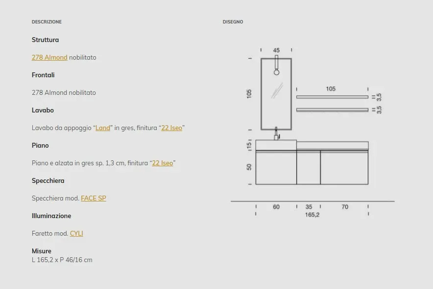 Se sceglierai il **arredo per il bagno** che rivendiamo, considera la spedizione e le annesse spese di trasporto incluso nazionale (no isole) per quest'offerta. Durante l'acquisto di un **arredo per il bagno** è essenziale considerare le dimensioni dell'ambiente da ultimare, ma pure lo stile che meglio trasmette il tuo stile personale. Le finiture e i colori saranno coordinati con quelli di rivestimenti e pavimentazioni. Questa soluzione è disponibile in laminato. Tra molteplici **arredi per la sala da bagno**, il mobile sospeso che puoi vedere a prezzo ribassato ben si inserisce nel locale. Costruito con materiali di qualità, ti consentirà di arredarlo con classe e trovare soluzione alle necessità di praticità richieste alla zona bagno. Se sei un amante dello stile tradizionale, acquista i mobili dalle forme morbide; se, invece, desideri seguire uno stile moderno, opta per arredi dalle linee essenziali; dopo aver definito qual è lo stile che vuoi, considera che questa soluzione per la sala da bagno ben si inserisce in un ambiente moderno.
