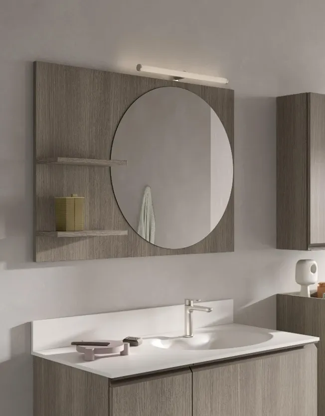 - Questa proposta comprende uno specchio di classe ed eleganza, pensato apposta per definire il valore estetico dell'ambiente e per facilitare le consuete pratiche di cura della propria persona a cui esso è deputato.
