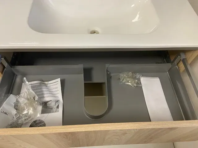 - Dettagli: Lavello integrato, Rubinetteria nessun rubinetto, Specchio specchio