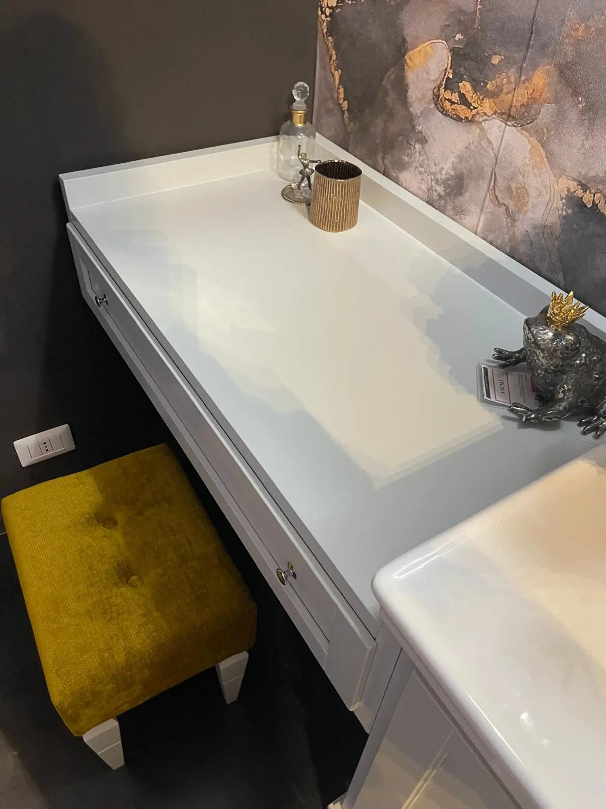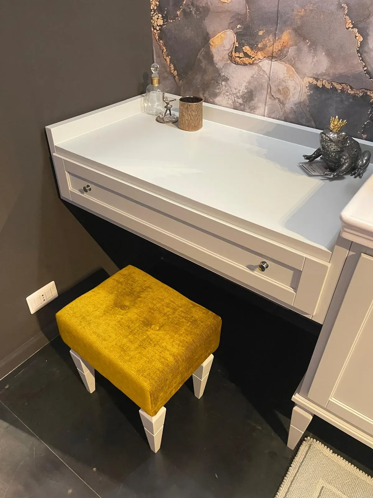 YORK/CENERE_ BAGNO MOD. YORK L.107 P.53 + CONSOLLE L.93 P.53 LACC. CENERE OPACO SGABELLO VELLUTO COLOR