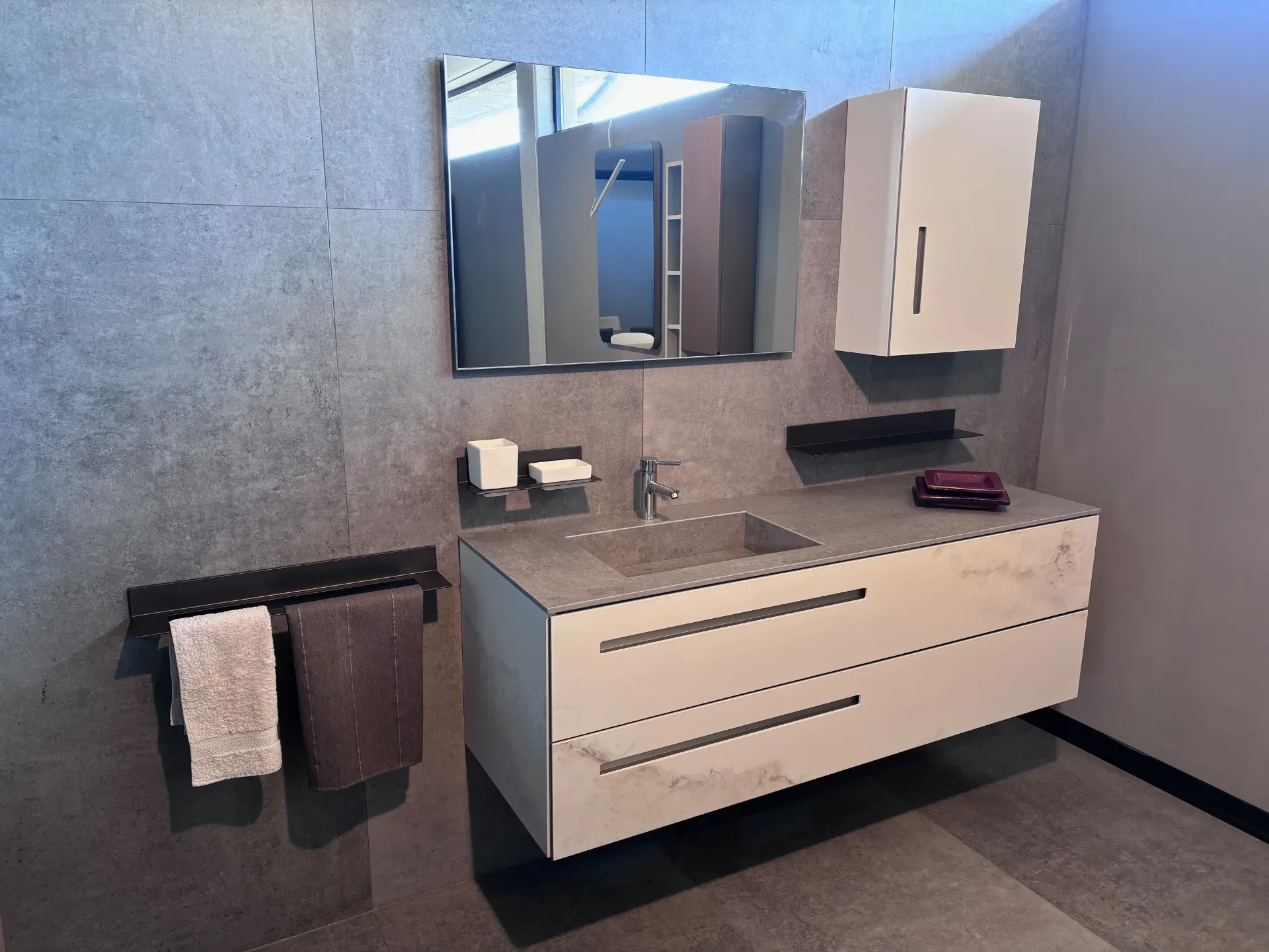 Al fine di poter far fronte a diverse esigenze abitative, il brand ha ideato una serie di arredi di differenti tipologie per la sala da bagno; il modello presente in foto è un mobile sospeso, multifunzionale e capiente.