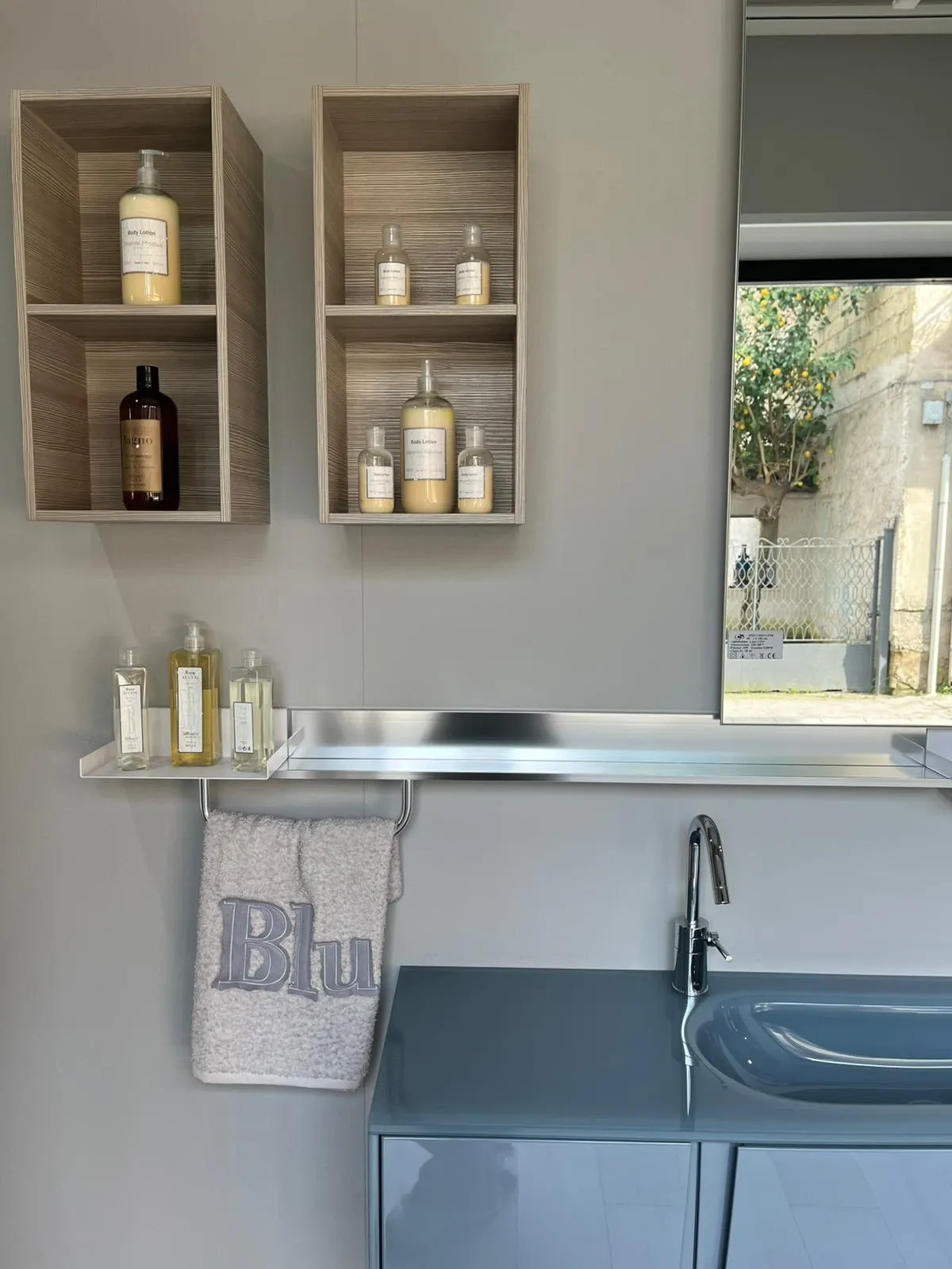 - Accessori: lavello, rubinetto e specchio