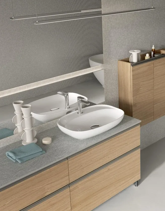 Eccellenza di materiali e forme, ergonomia e sicurezza sono doti da ricercare in tutti i mobili ed elementi accessori per il bagno di grande pregio, come quelli del marchio qui citato che contano sempre su finiture eccellenti e forme decise. La composizione Bik 05 qui visibile, ad esempio, è una tra le nostre soluzioni di arredo bagno in legno.