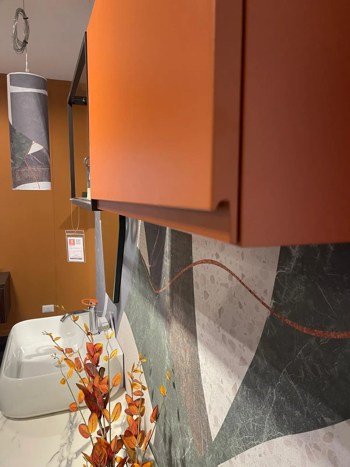 BGO/LAOS_ BAGNO MOD. BGO L.200 P.50 FINITURE LAOS, LACCATO SABBIATO GINGER, STRATIFICATO STATUARIO