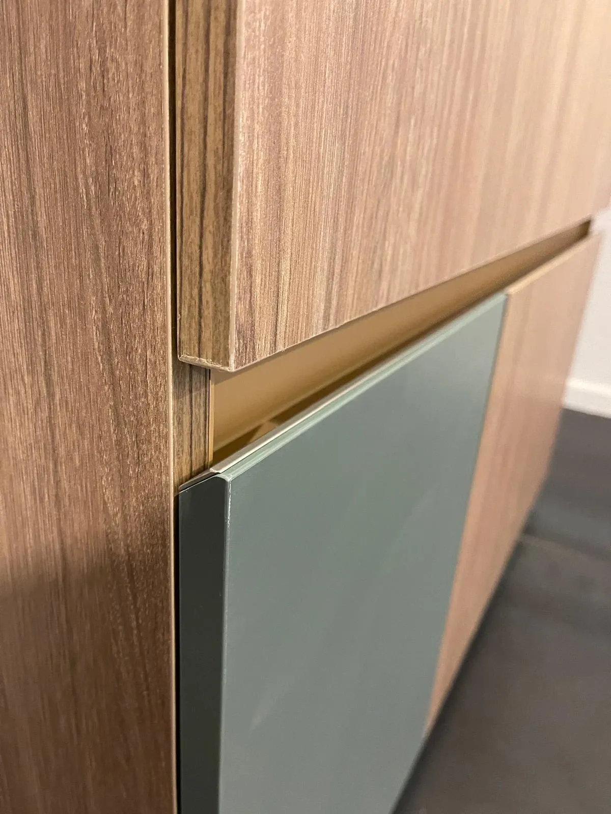 BAGNO CERSA SEGNO_ MOBILE BAGNO E COLONNA MODELLO SEGNO L105 H76 P45.5 FINITURE: LACCATO VERDE BOSCO OPACO, NOBILITATO ESSENZA FOREST, NOBILITATO ESSENZA COLORATO GARDEN