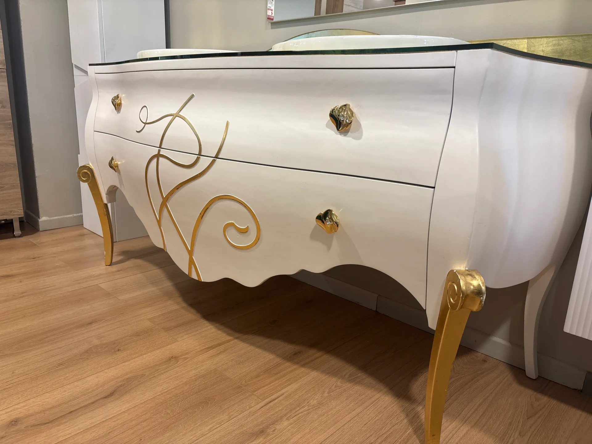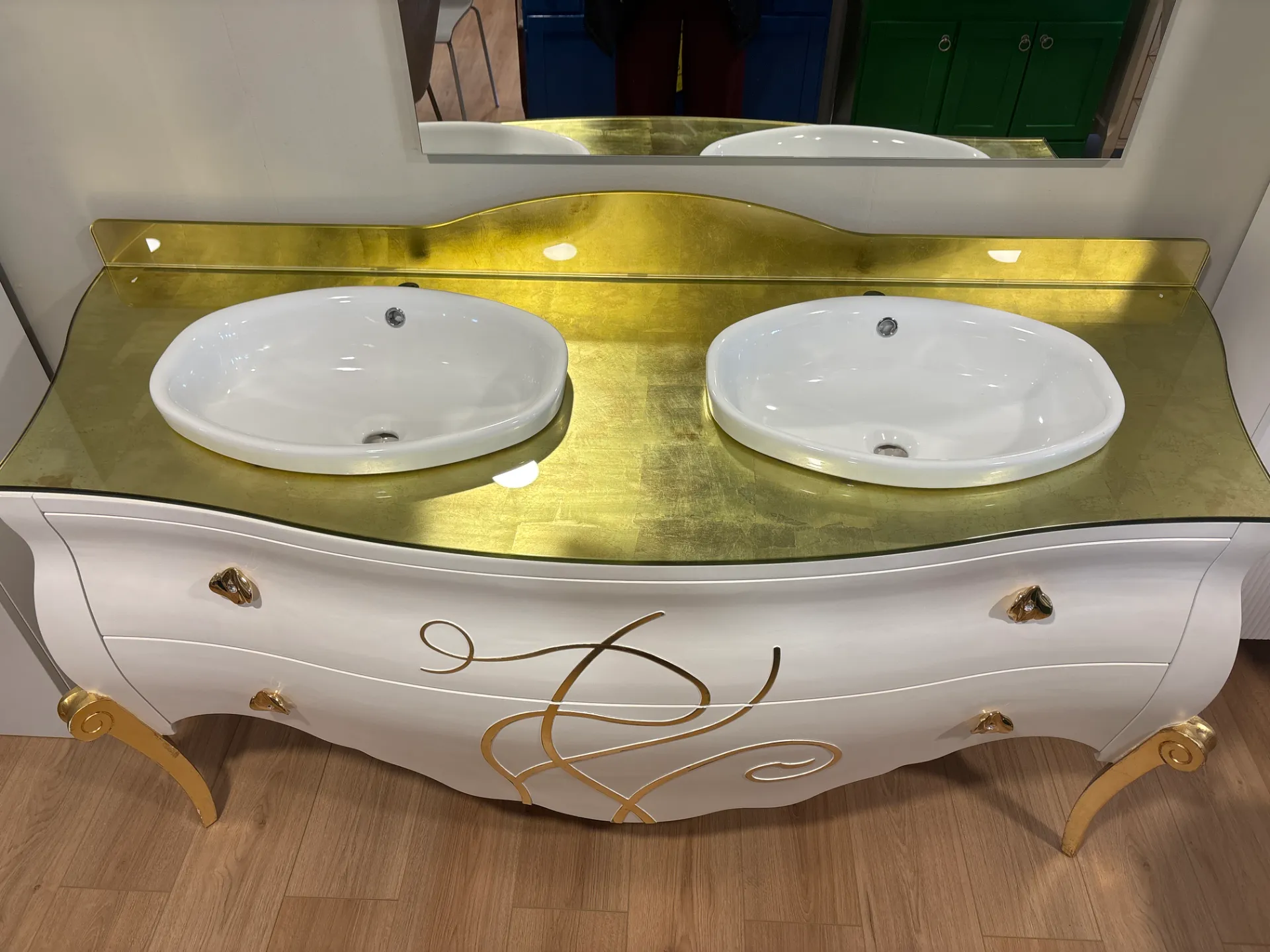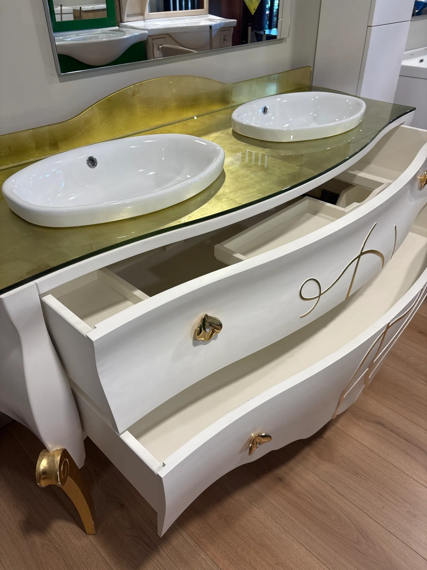 Mobile bagno artigianale con doppio lavabo in vero legno