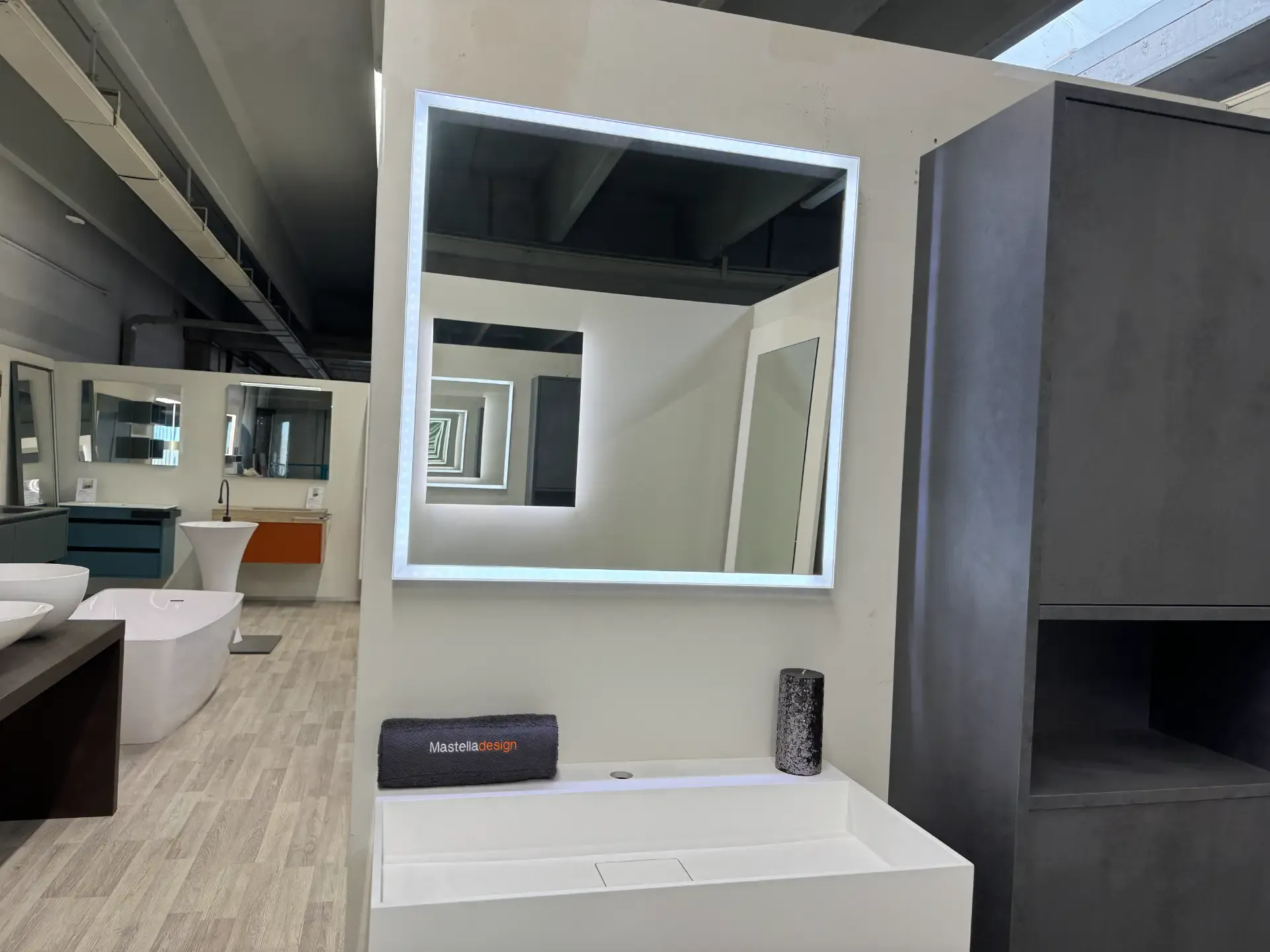 L’Ocritech del lavabo Trend è un materiale innovativo di puro acrilico colato, senza cariche minerali, con finitura bianco opaco. Tra le sue peculiarità spicca la sua resistenza all’assorbimento di alcuni prodotti cosmetici e di bellezza tipici, come ad esempio la tintura per capelli.A completamento lo specchio Jack cm. L.70 h.70 con led e struttura in alluminio bianco.