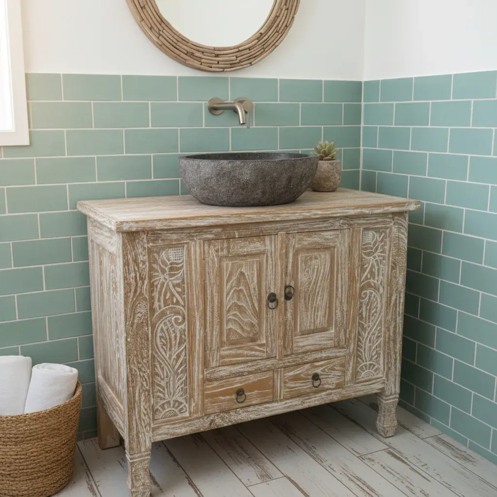 Mobile Credenza Bagno Teak , Mobile etnico realizzato artigianalmente in Teak massello.