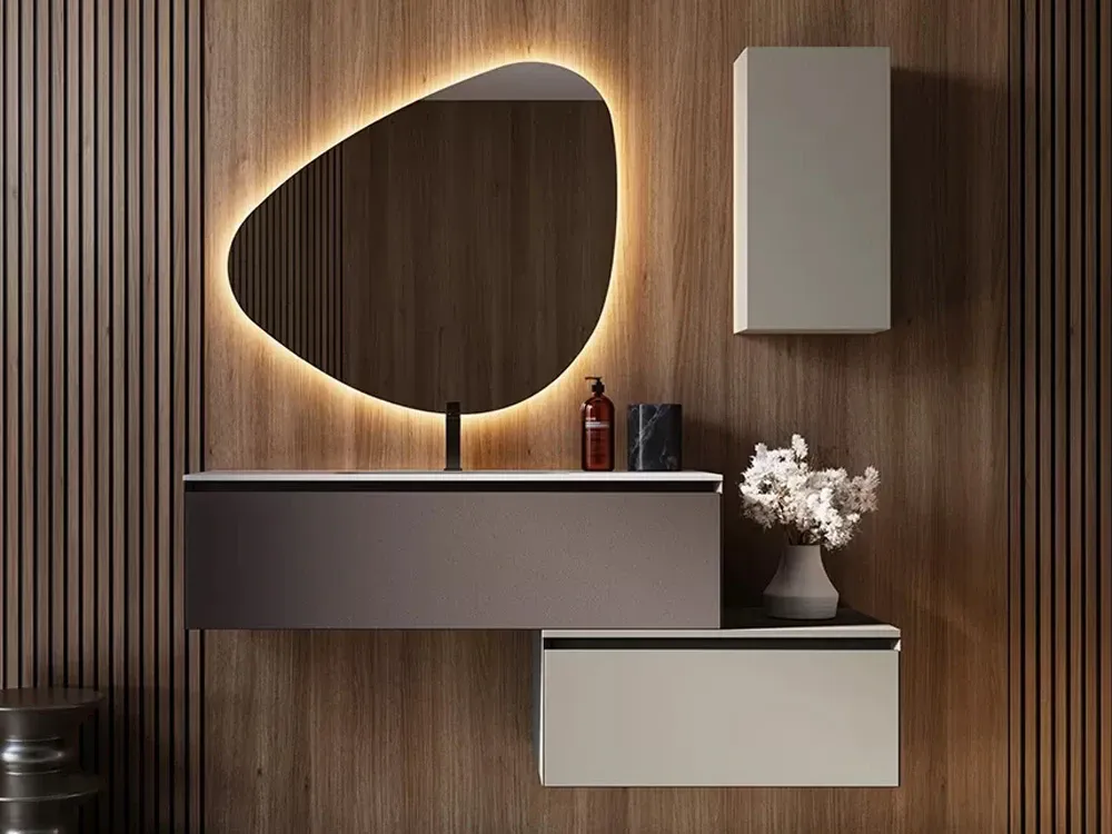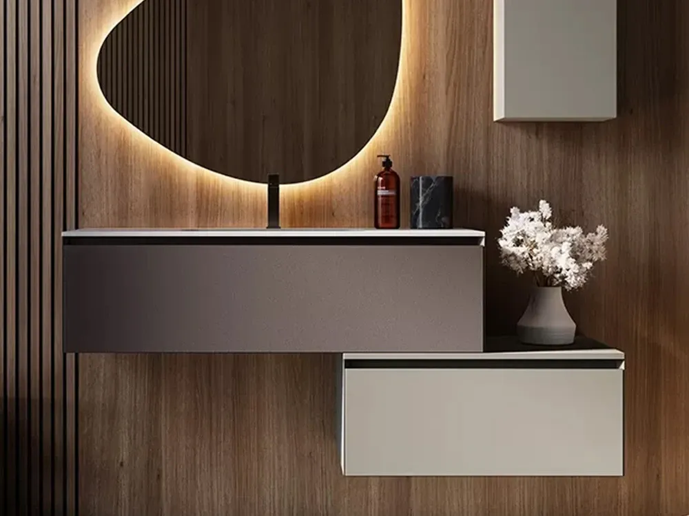 Bagno con base sospesa e specchiera