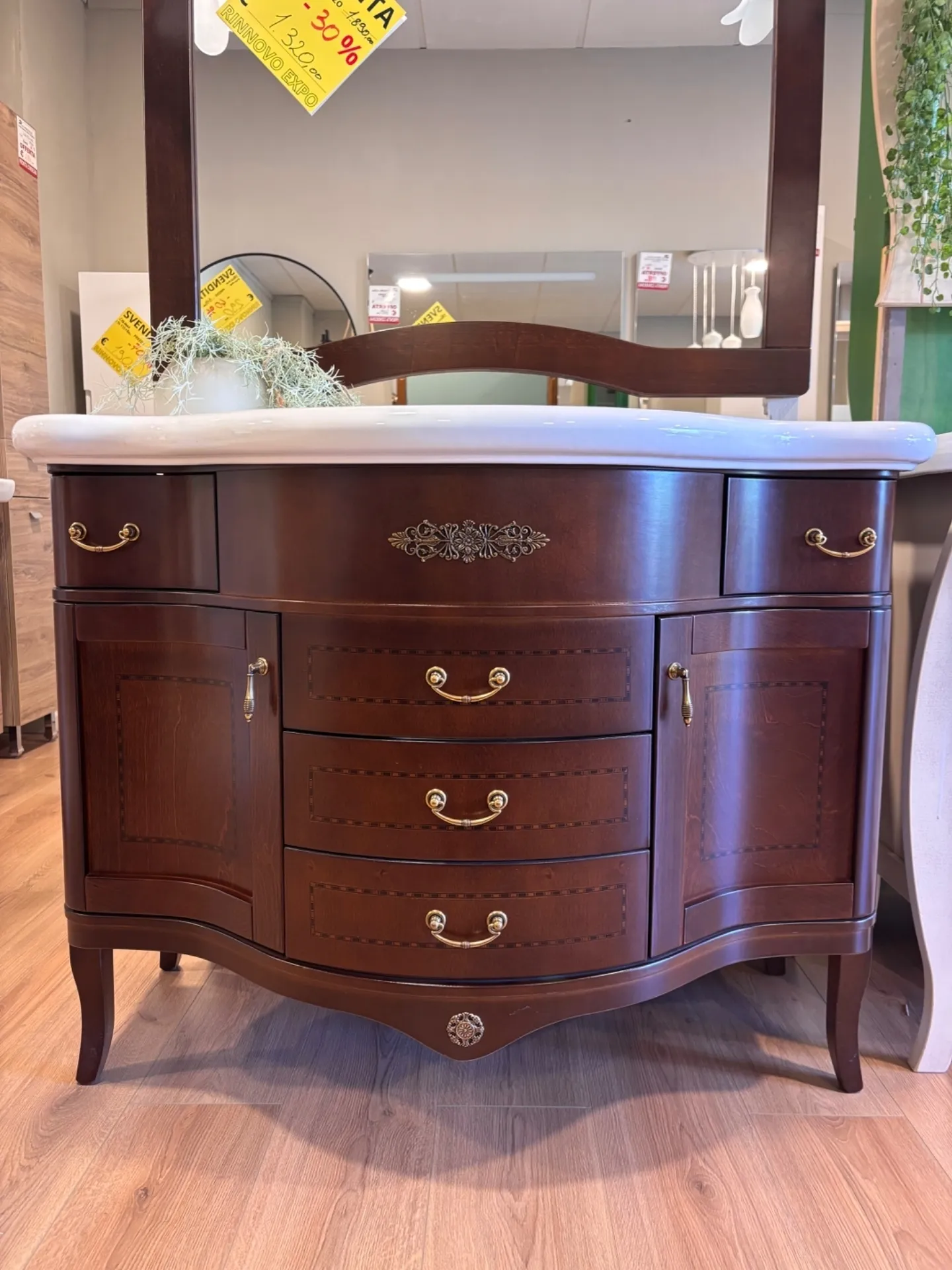 Durante l'acquisto di un mobile bagno è imprescindibile tenere in considerazione le misure del locale da ultimare, ma anche lo stile che meglio riverbera il tuo gusto personale. Le finiture e i colori andranno coordinati con quelli di pareti e pavimentazioni. Questa proposta è realizzata in legno. Nella tua stanza da bagno potrà essere collocato questo mobile a terra, disponibile in Offerta Outlet. Questo modello è pensato da uno dei più conosciuti brand nel settore, il quale ha dedicato grande attenzione nella selezione dei materiali da usare, che in bagno devono garantirti resistenza e praticità. Se deciderai di acquistare il mobile bagno che distribuiamo, tieni in considerazione la spedizione e i conseguenti spese trasporto escluso per questa proposta. Per costruire gli arredi per il tuo bagno, oggi le aziende nel settore impiegano la stessa attenzione destinata agli arredi degli altri locali domestici. In tal modo ciascuno potrà ultimare anche il bagno con un elevato contenuto estetico, secondo una propria coerenza di stile. Vieni a scoprire questa soluzione di arredo bagno in stile classici. Mobile bagno artigianale finitura noce, marca: