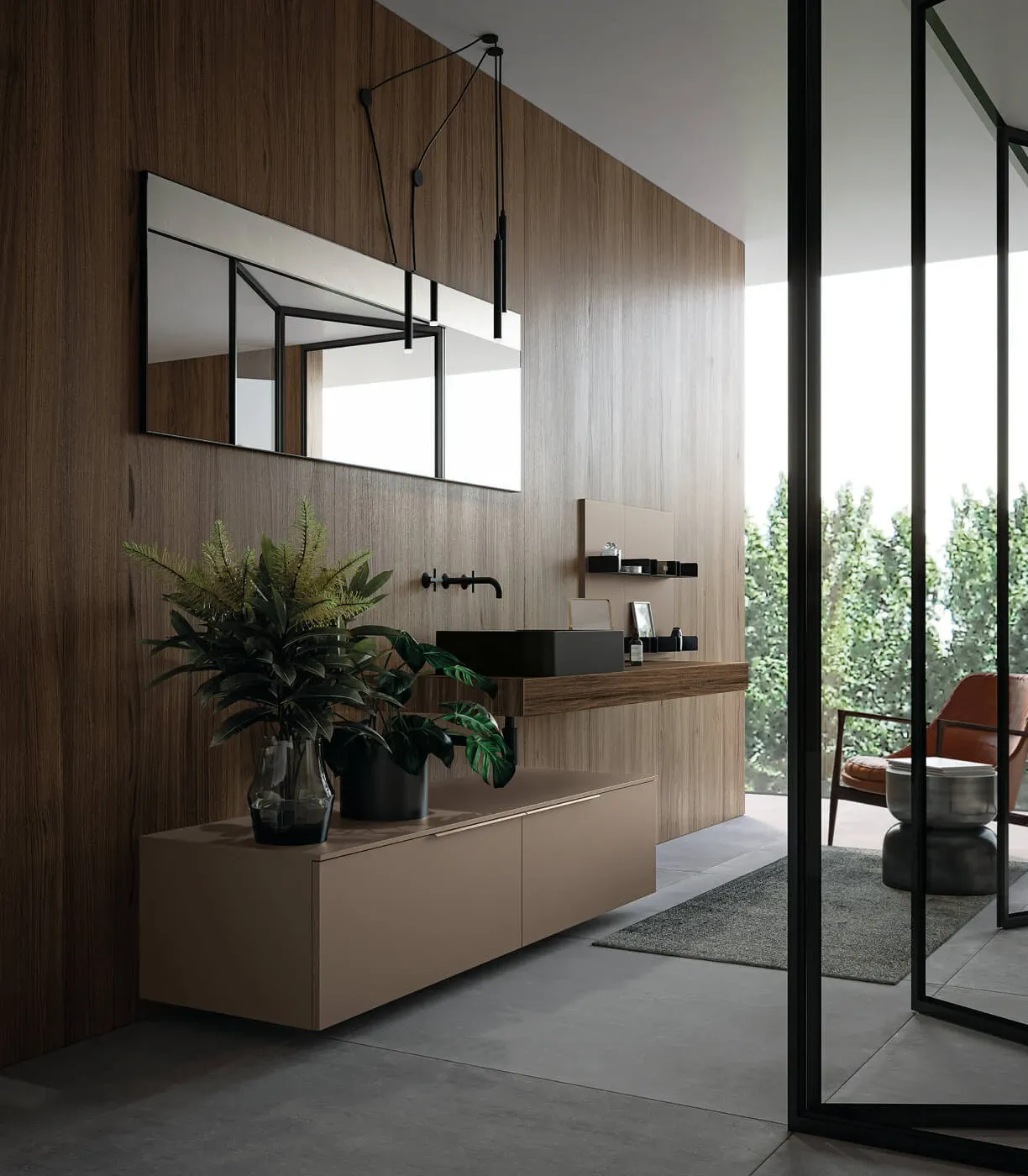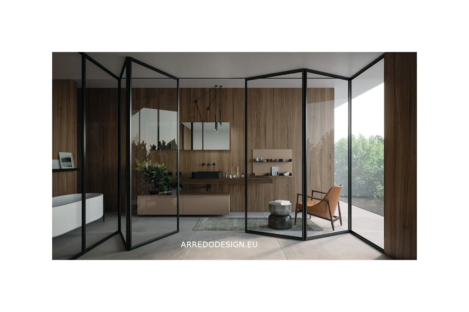 - Questa soluzione include uno specchio di eleganza e classe, pensato appositamente per connotare il valore estetico dell'ambiente e per agevolare le consuete pratiche di cura personale a cui esso è deputato.