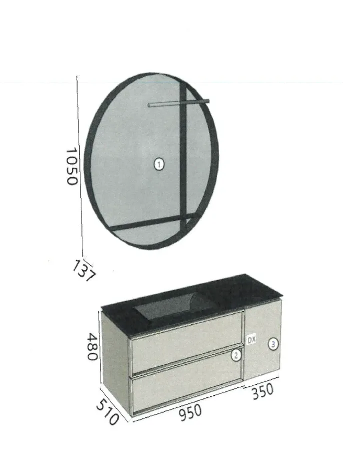 Bagno sospeso in laccato opaco ral grigio 7032: completo di base lavabo 2 cassetti, 1 anta , top in lamiera metallo nichel , lavello , specchio. Misure: Larghezza: 130 cm x prof. 51 cm. Specchio da 105 cm di altezza x 137 cm. Come da foto.
