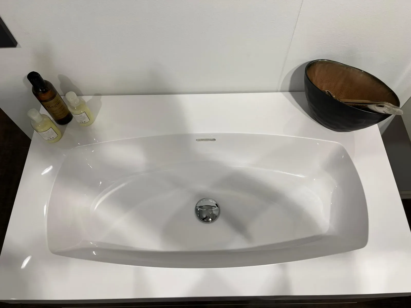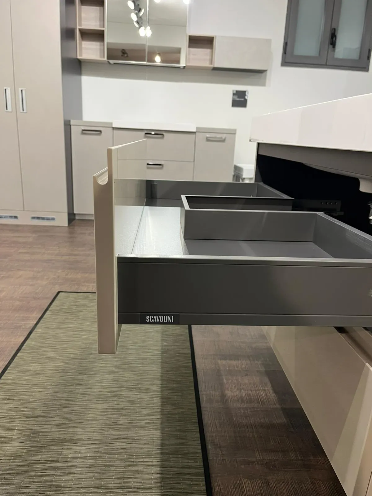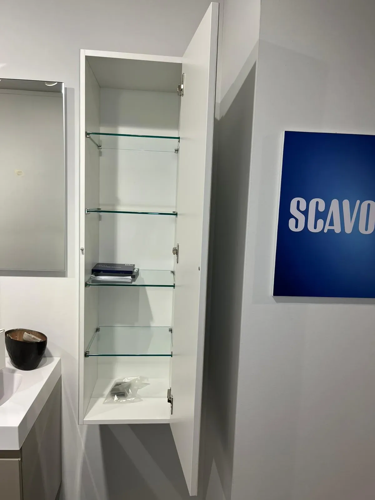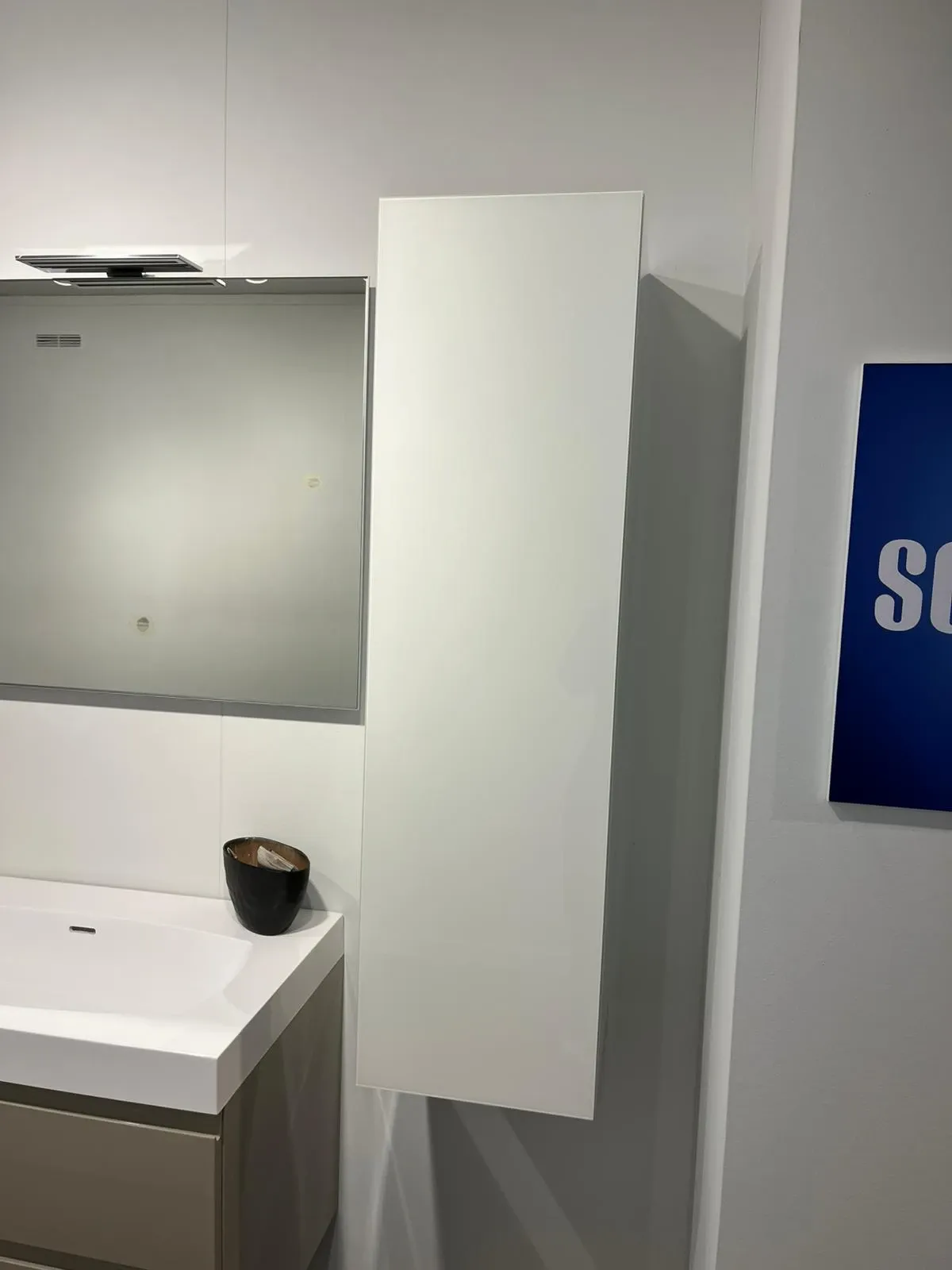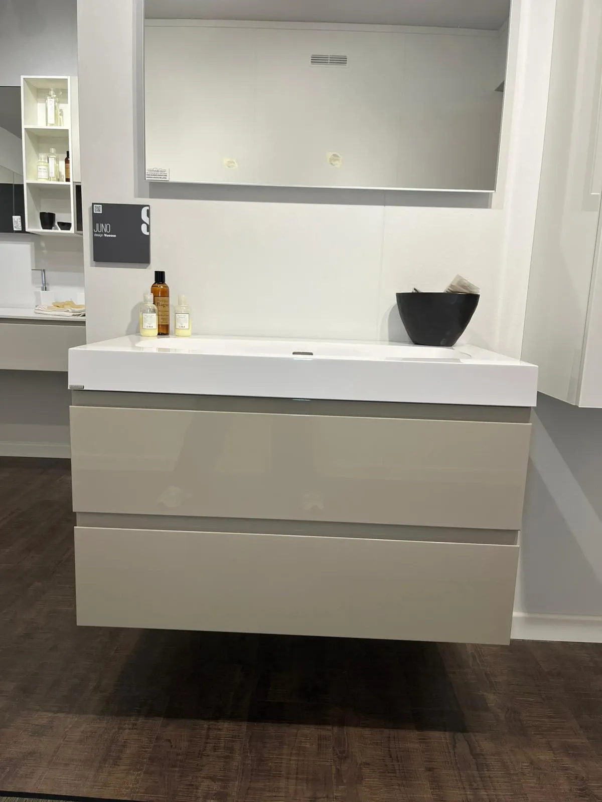 Bagno sospeso Scavolini Juno laccato lucido visone con lavabo monoblocco 90 cm