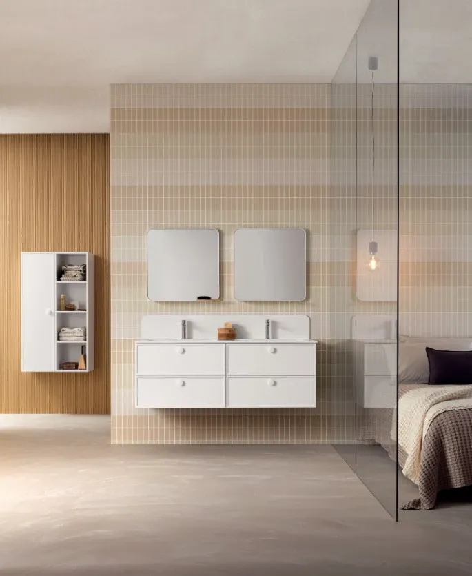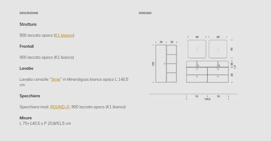 il laccato opaco di grande qualità selezionato e lavorato con cura per questo mobile bagno, assicura i risultati migliori sotto l'aspetto della praticità, con una buona resa estetica; questa soluzione è perfetta per essere collocata in ambienti di ogni tipo, resistendo nel tempo all'azione di vapore acqueo e agenti chimici.