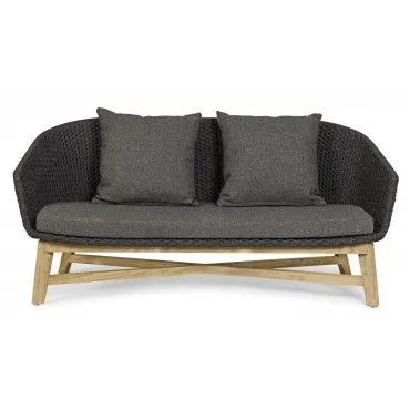 DIVANO DUE POSTI STRUTTURA IN ALLUMINIO VERNICIATO A POLVERE GAMBE IN LEGNO DI TEAK INTRECCIO IN CORDA OLEIF, VITERIA IN ACCIAIO GALVANIZZATO COMPLETO DI CUSCINI SEDUTA E SCHIENALE SFODERABILE CON TESSUTO SUNPROOF. DIM. 168X78X77 ALTEZZA SEDUTA 39 ALTEZZA BRACCIOLO 65. POSSIBILITA' DI AVERE POLTRONE E TAVOLO DELLA STESSA LINEA ( RICHIEDERE PREZZO SCONTATO) POSSIBILITA' DI PAGAMENTO RATEIZZATO