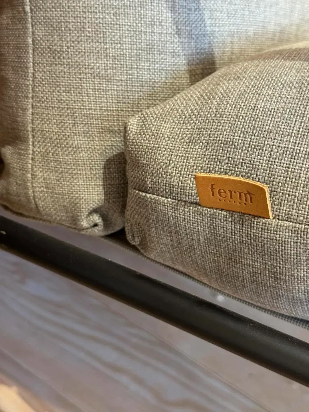Divanetto mod. Desert di Ferm Living in stile nordico, accattivante per la sua semplicità, ottimo confort in dimensioni ridotte. Struttura in metallo verniciato nero, tessuto imbottito colore fango. Un'azienda simbolo per stile e gusto danese.