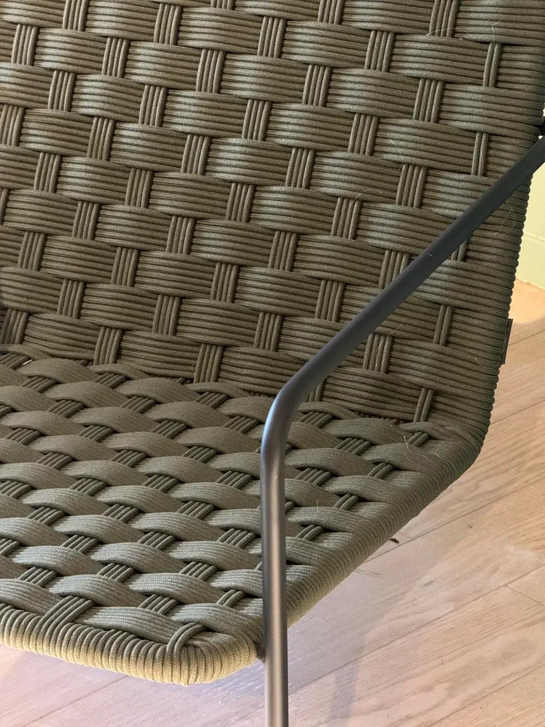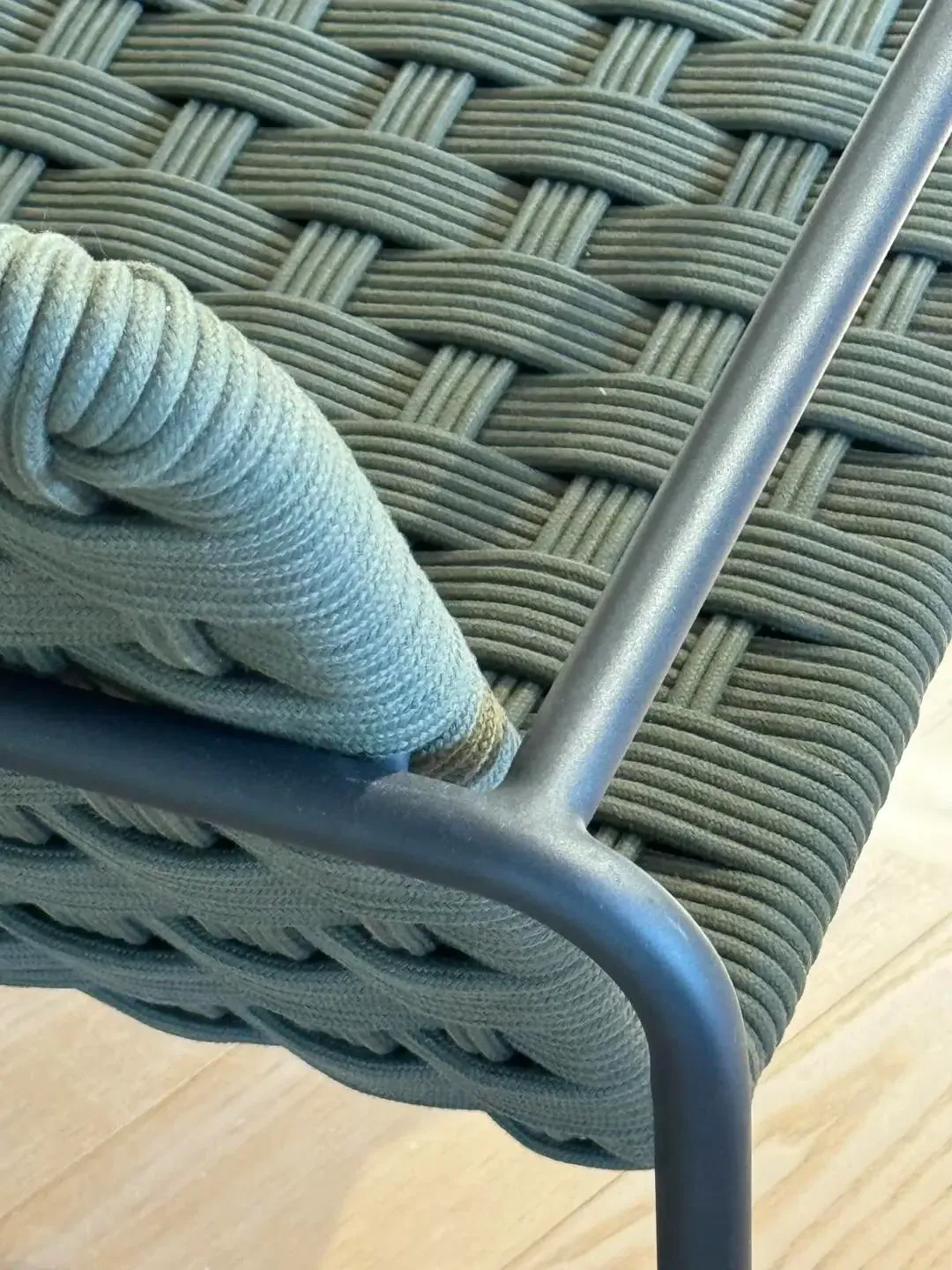Materiali: acciaio inox verniciato a polvere verde con corda nautica intrecciata a mano in tinta